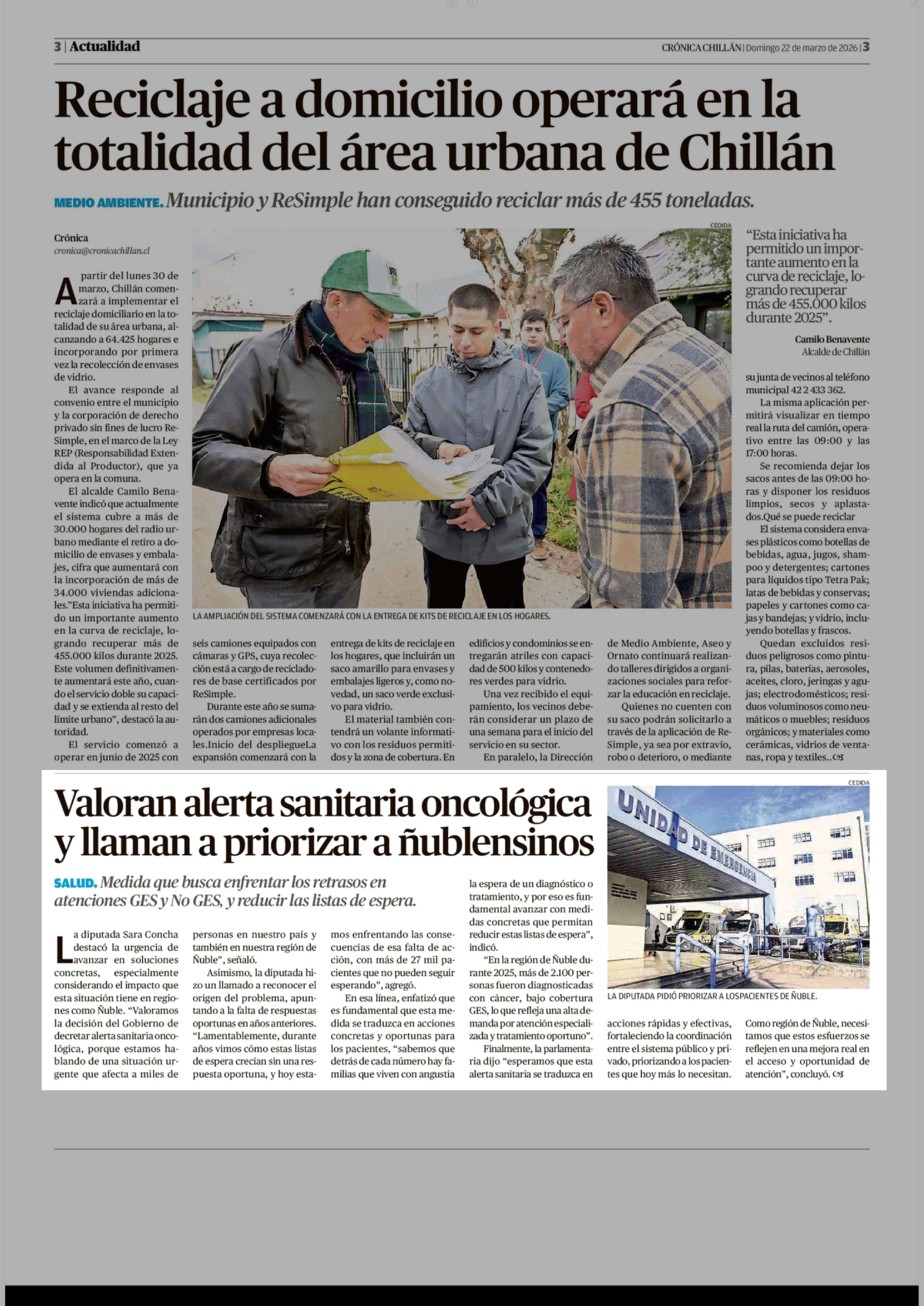 | Fecha: | 22-03-2026 | Sector: | Noticia general | Región: | Región del Ñuble |