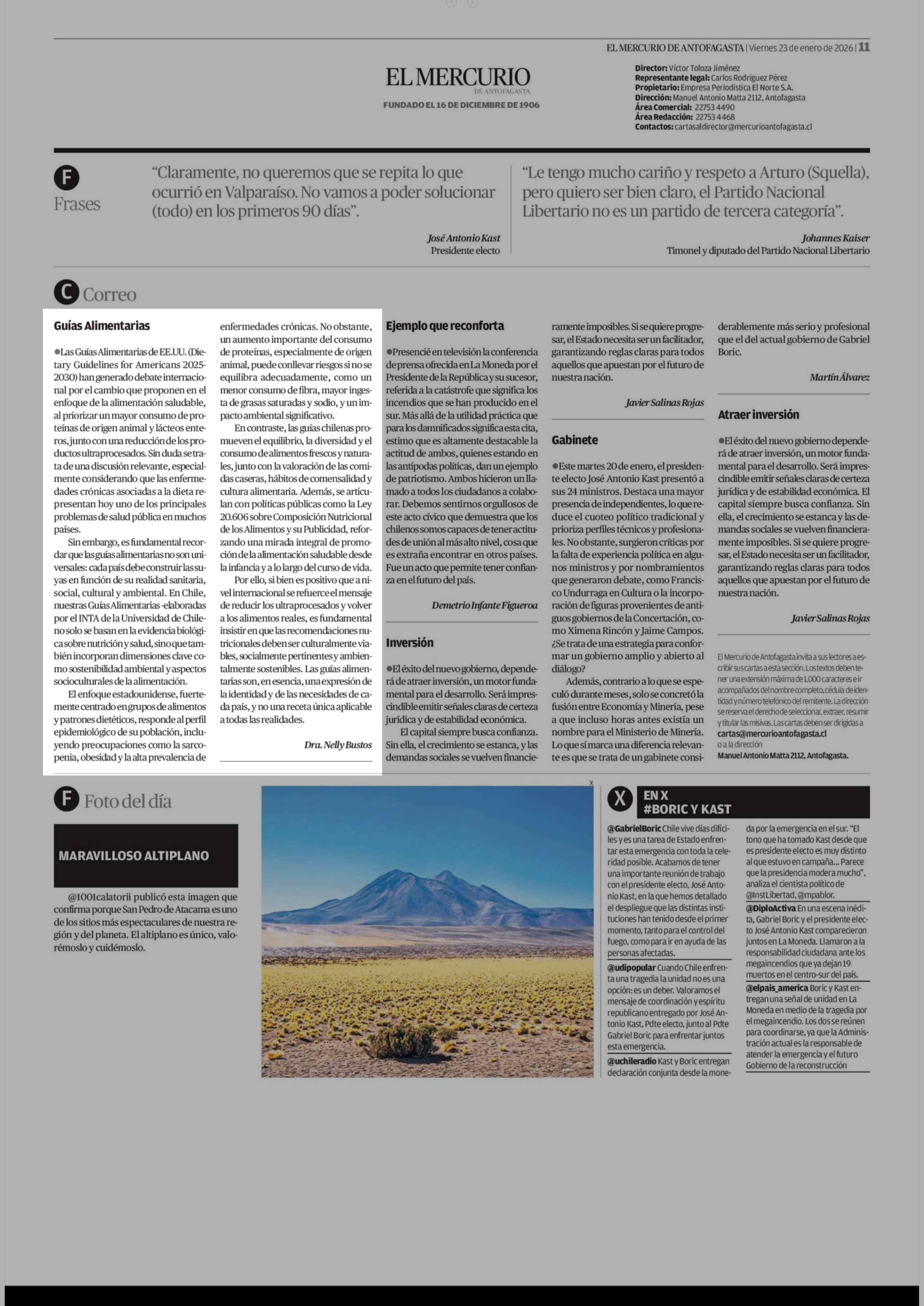 Cartas: Guías Alimentarias 23-01-2026 El Mercurio de Antofagasta |