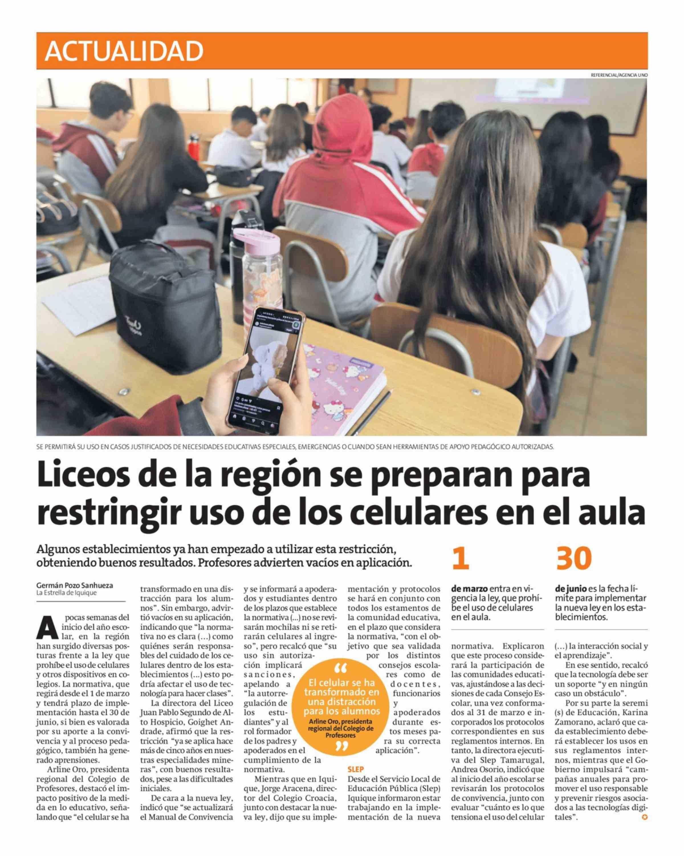 Título: Liceos de la región se preparan para restringir uso de los celulares en el aula