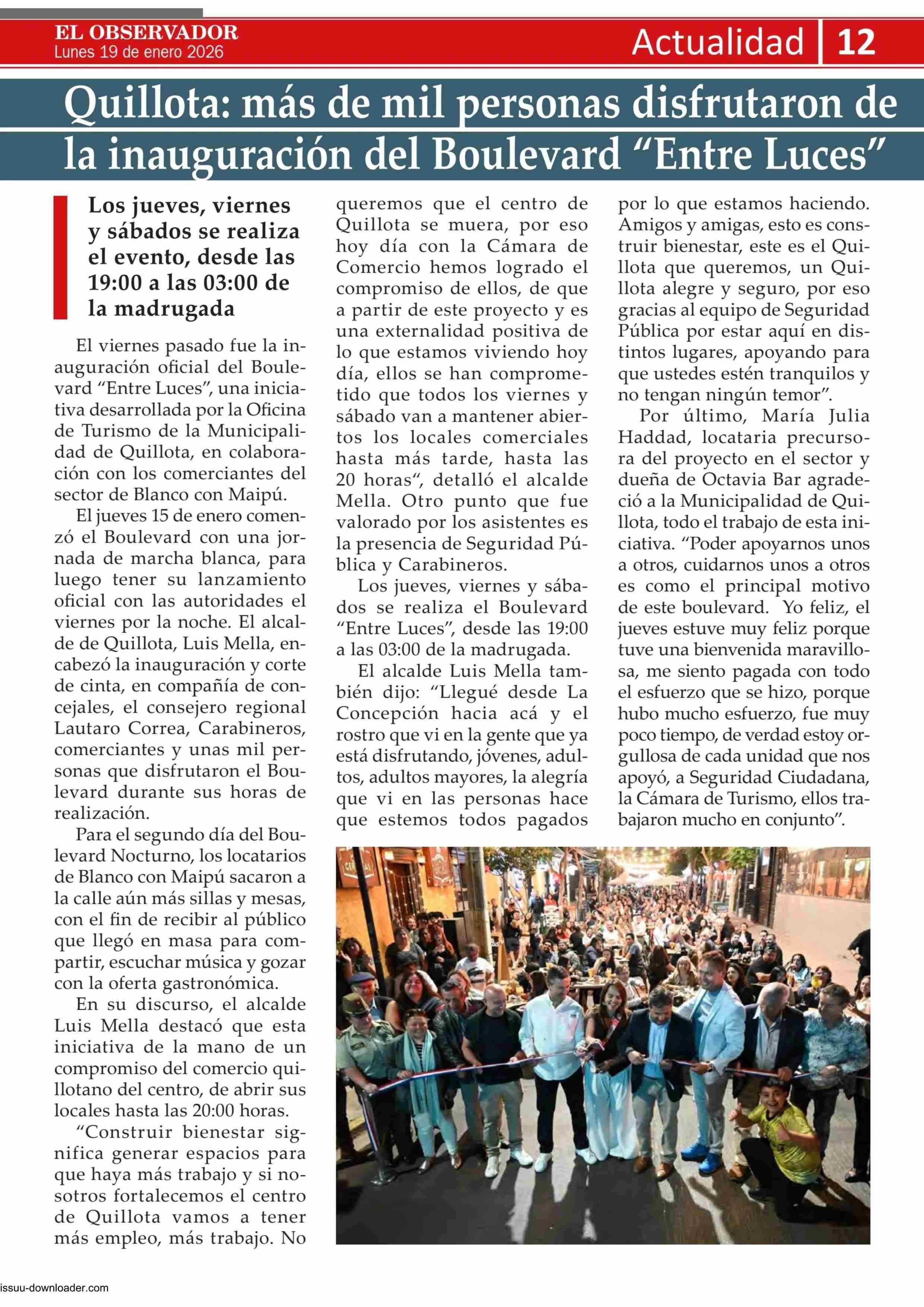 _Quillota: más de mil personas disfrutaron de la inauguración del Boulevard “Entre Luces” 19-01-2026 El Observador Vespertino |