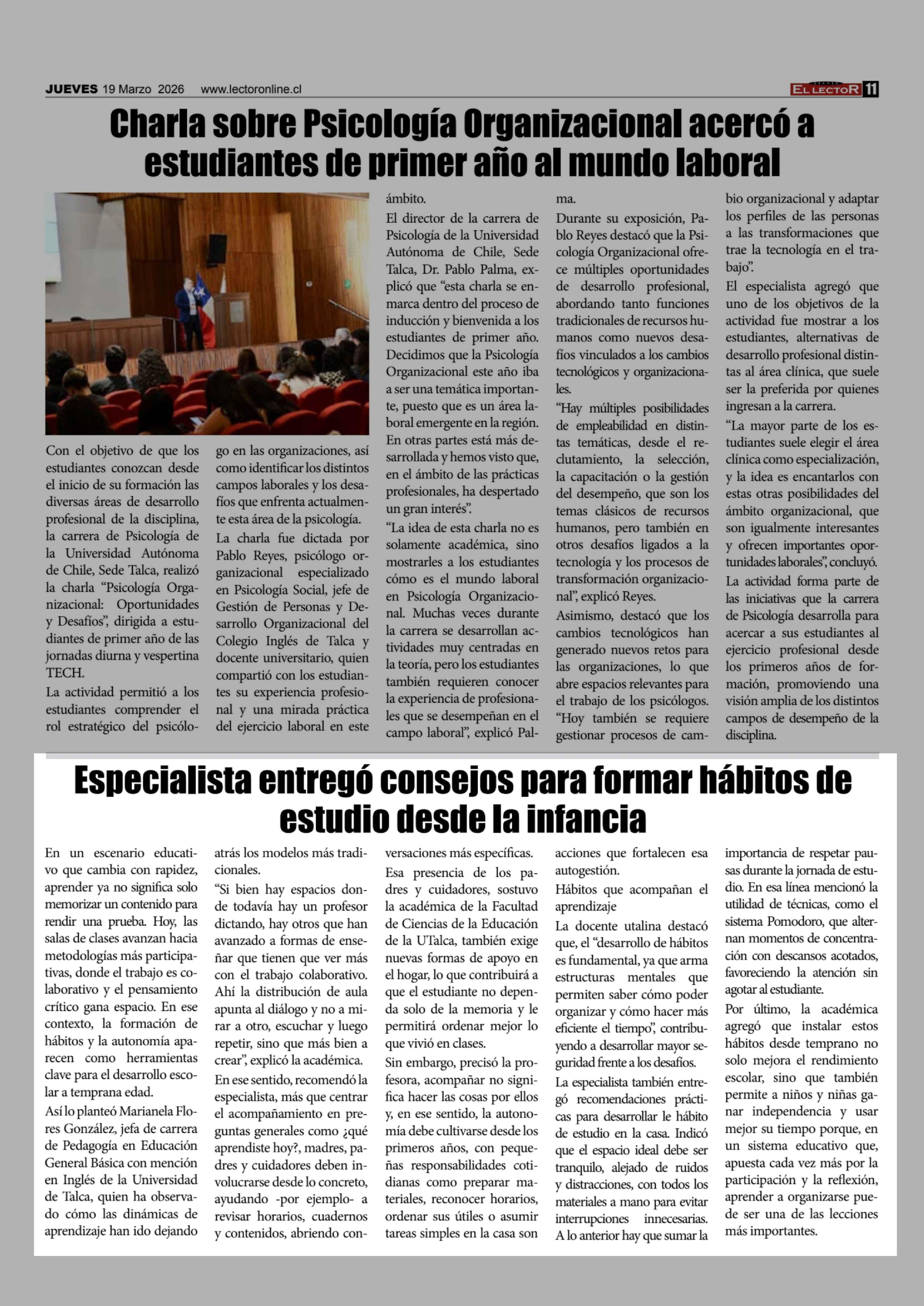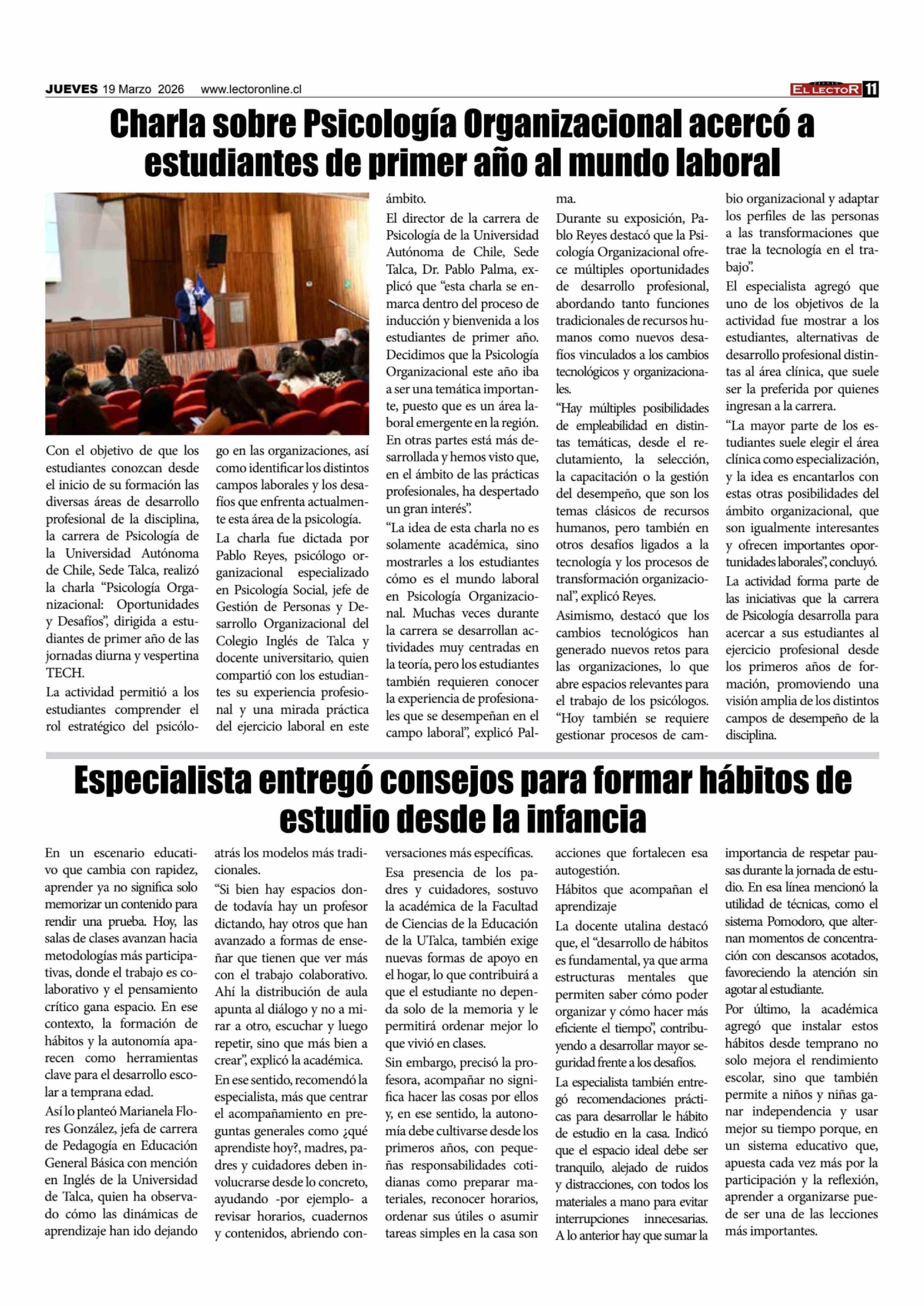 Especialista entregó consejos para formar hábitos de estudio desde la infancia 19-03-2026 El Lector |