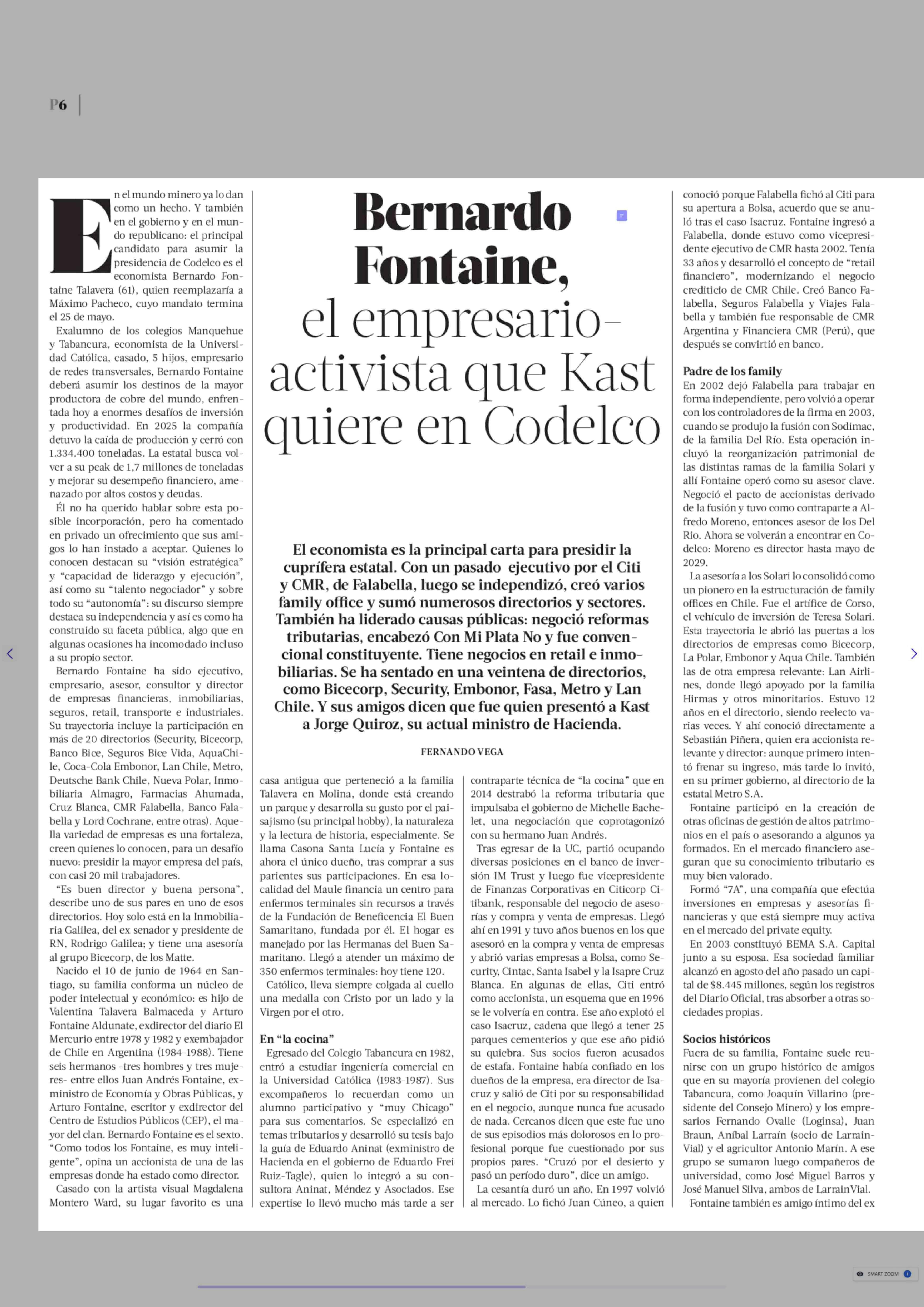 | Título: | Bernardo Fontaine, el empresarioactivista que Kast quiere en Codelco |