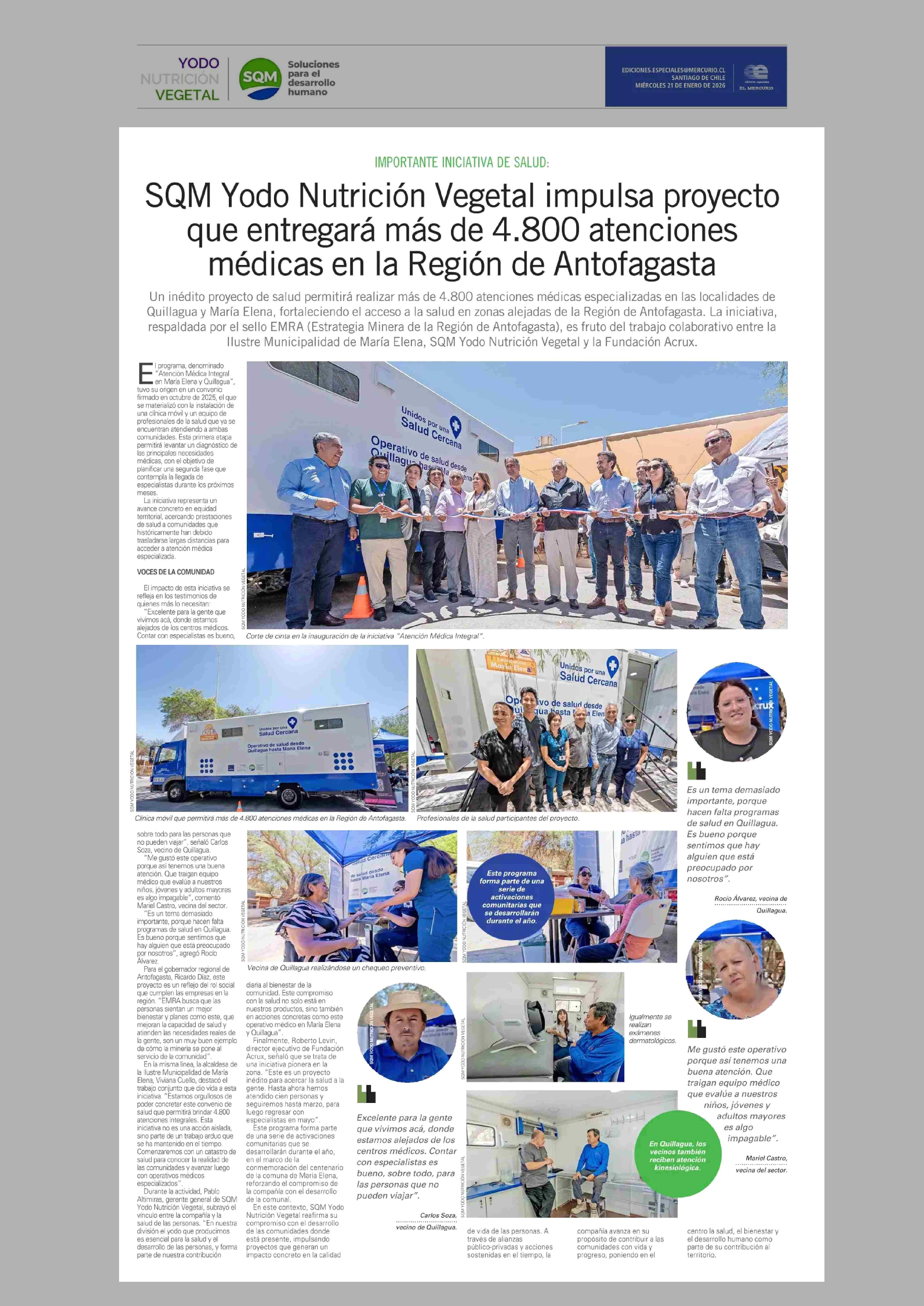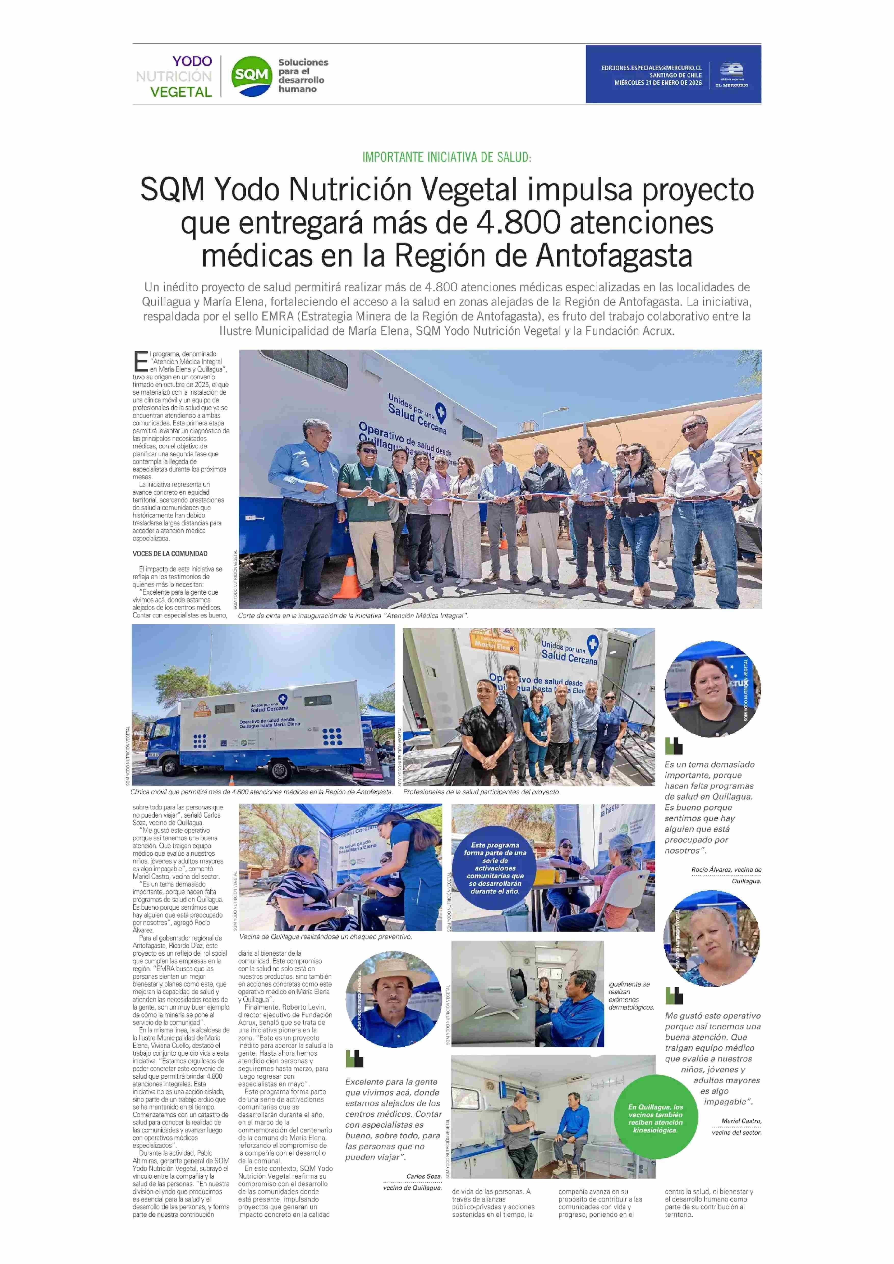 Título: SQM Yodo Nutrición Vegetal impulsa proyecto que entregará más de 4.800 atenciones médicas en la Región de Antofagasta