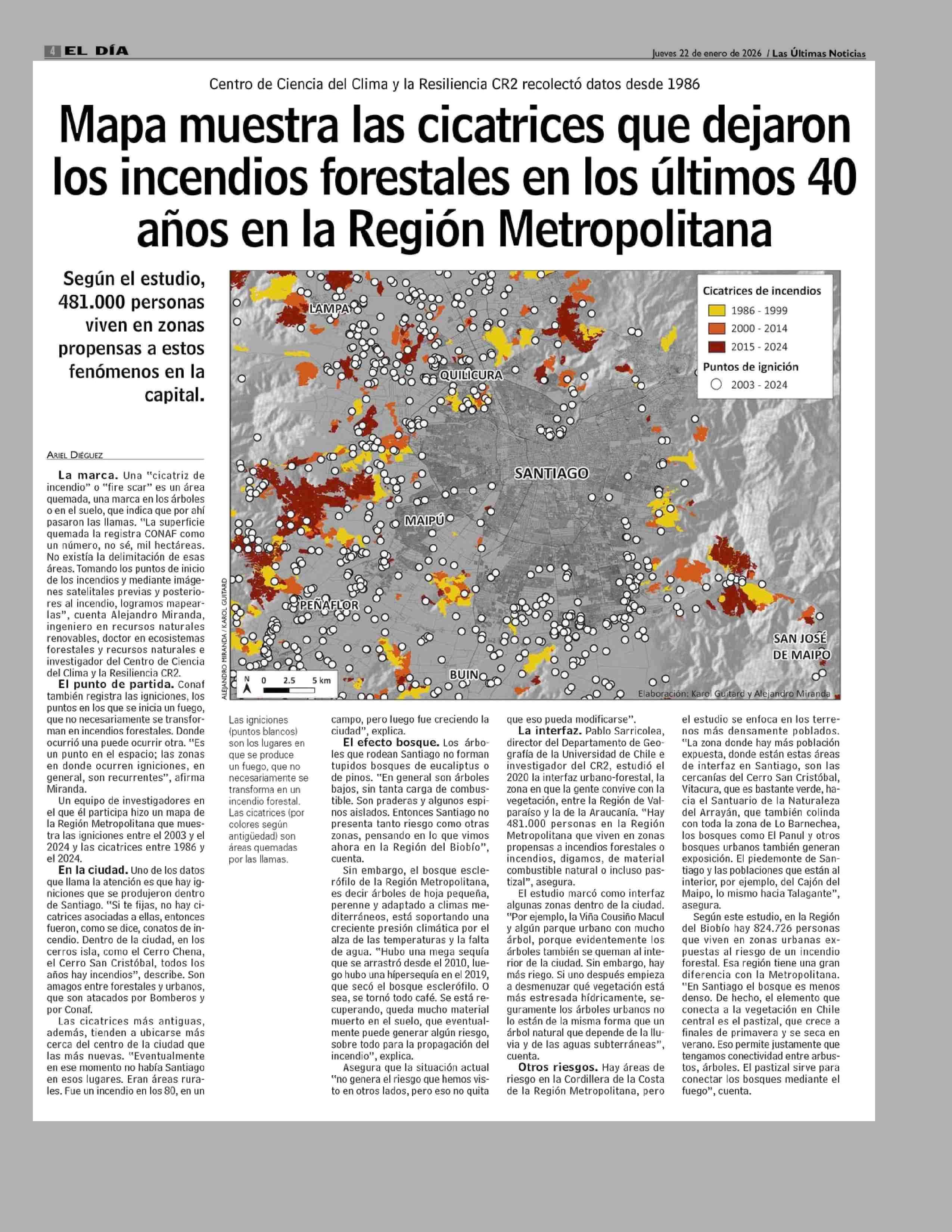 Mapa muestra las cicatrices que dejaron los incendios forestales en los últimos 40 años en la Region Metropolitana 22-01-2026 Las Últimas Noticias |