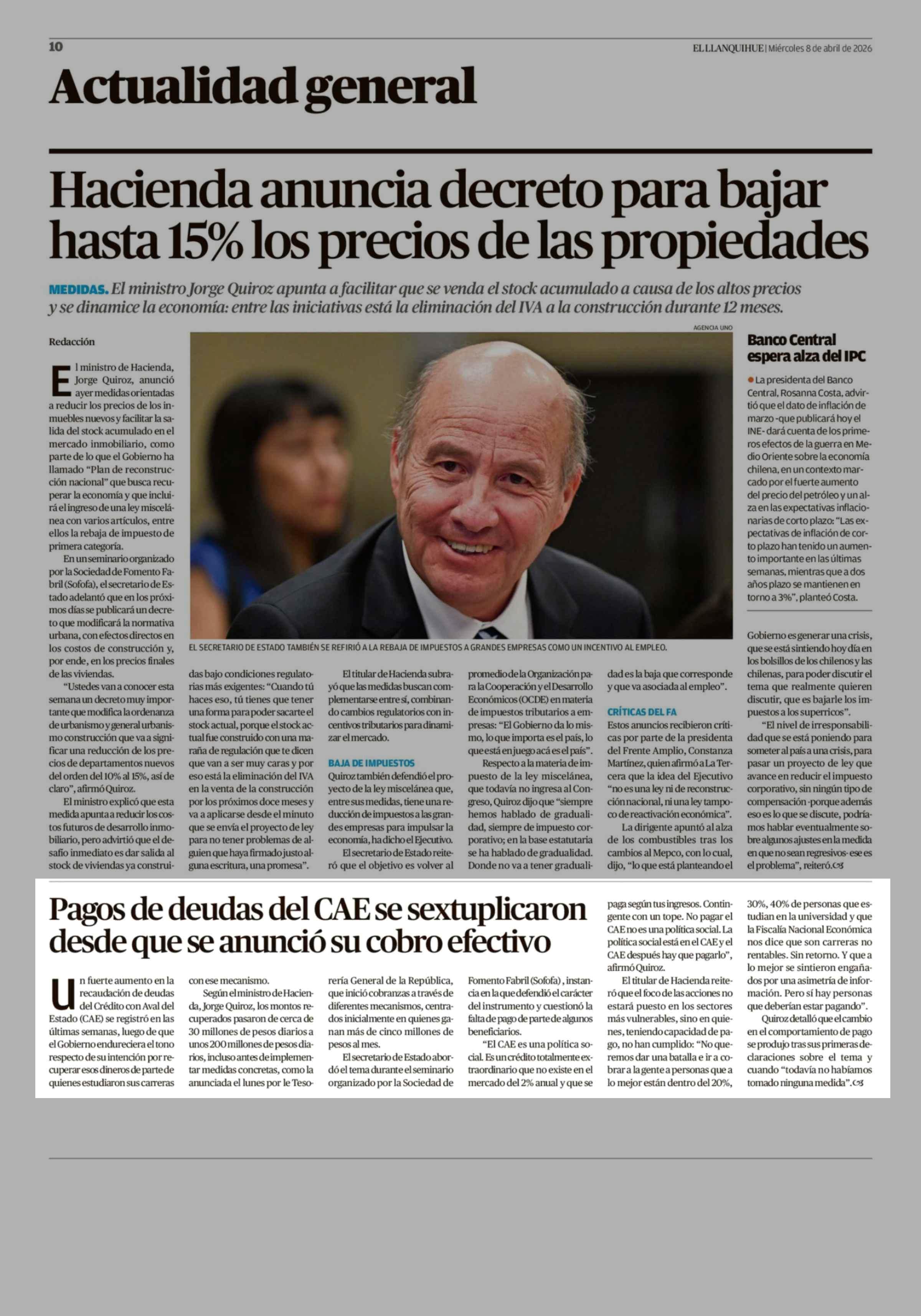 Pagos de deudas del CAE se sextuplicaron desde que se anunció su cobro efectivo 08-04-2026 El Llanquihue |