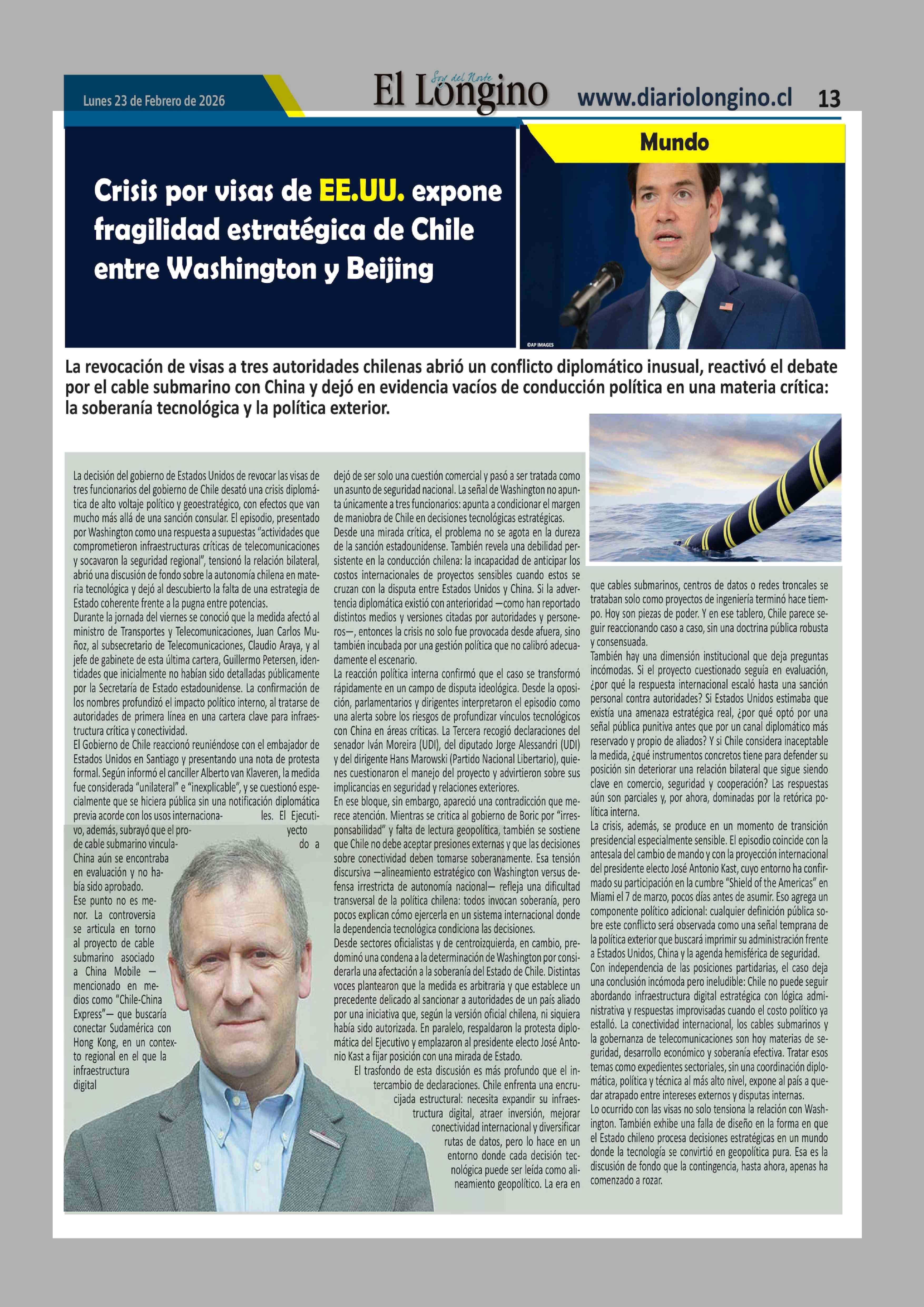 Título: Crisis por visas de EE.UU. expone fragilidad estratégica de Chile entre Washington y Beijing