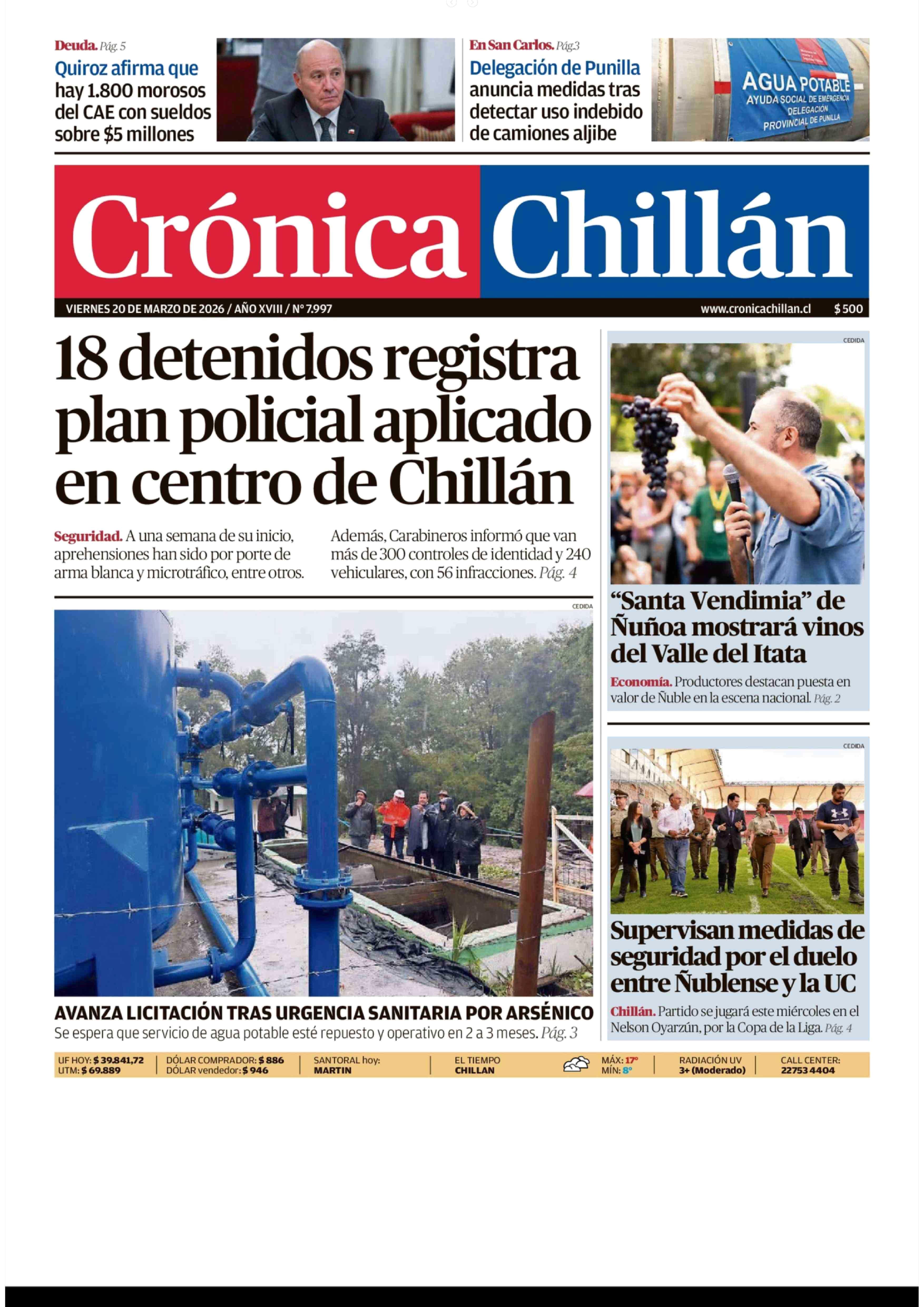 Fecha: 20-03-2026 Sector: Portada Región: Región del Ñuble