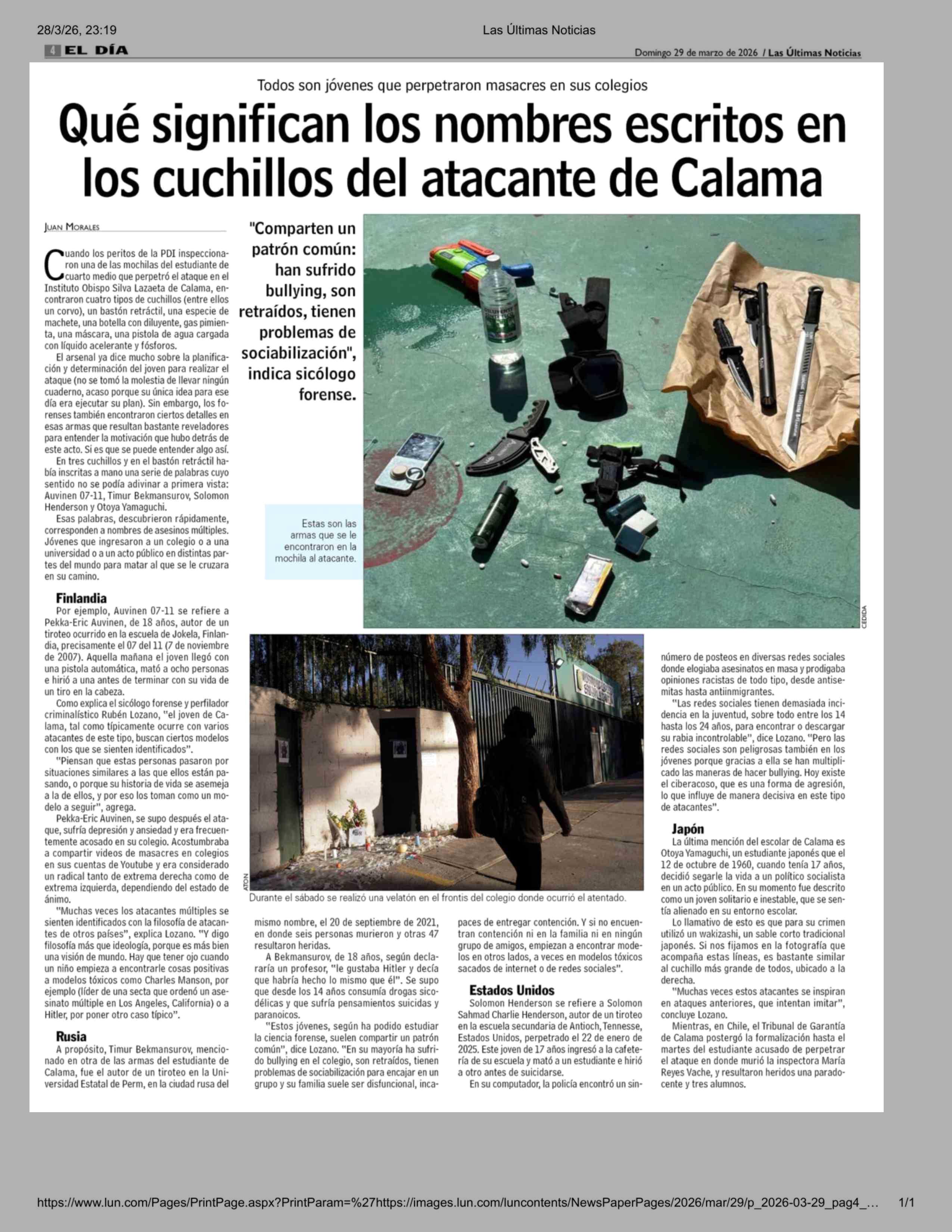 Título: Qué significan los nombres escritos en los cuchillos del atacante de Calama