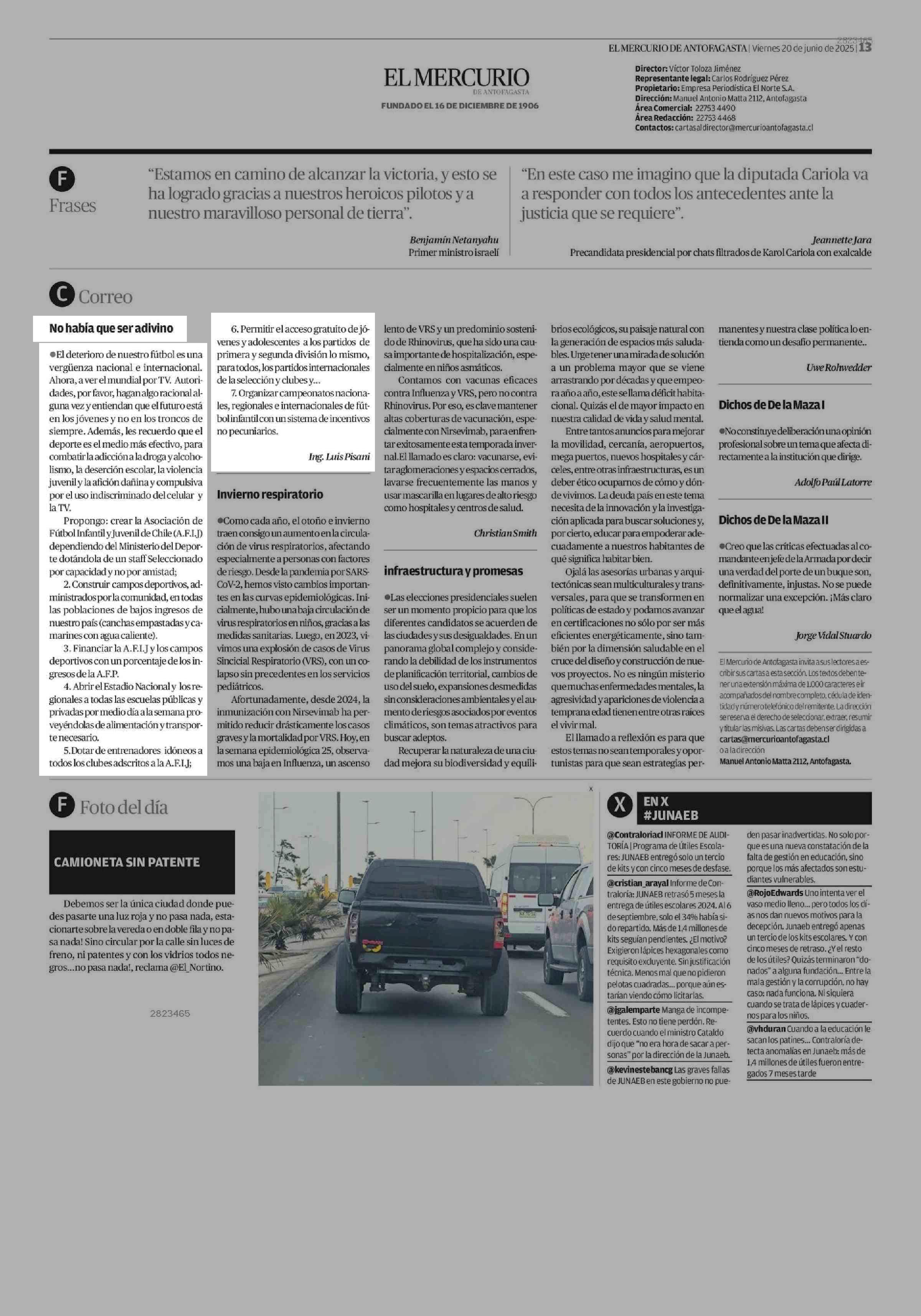 CARTAS: No había que ser adivino 20-06-2025 El Mercurio de Antofagasta |