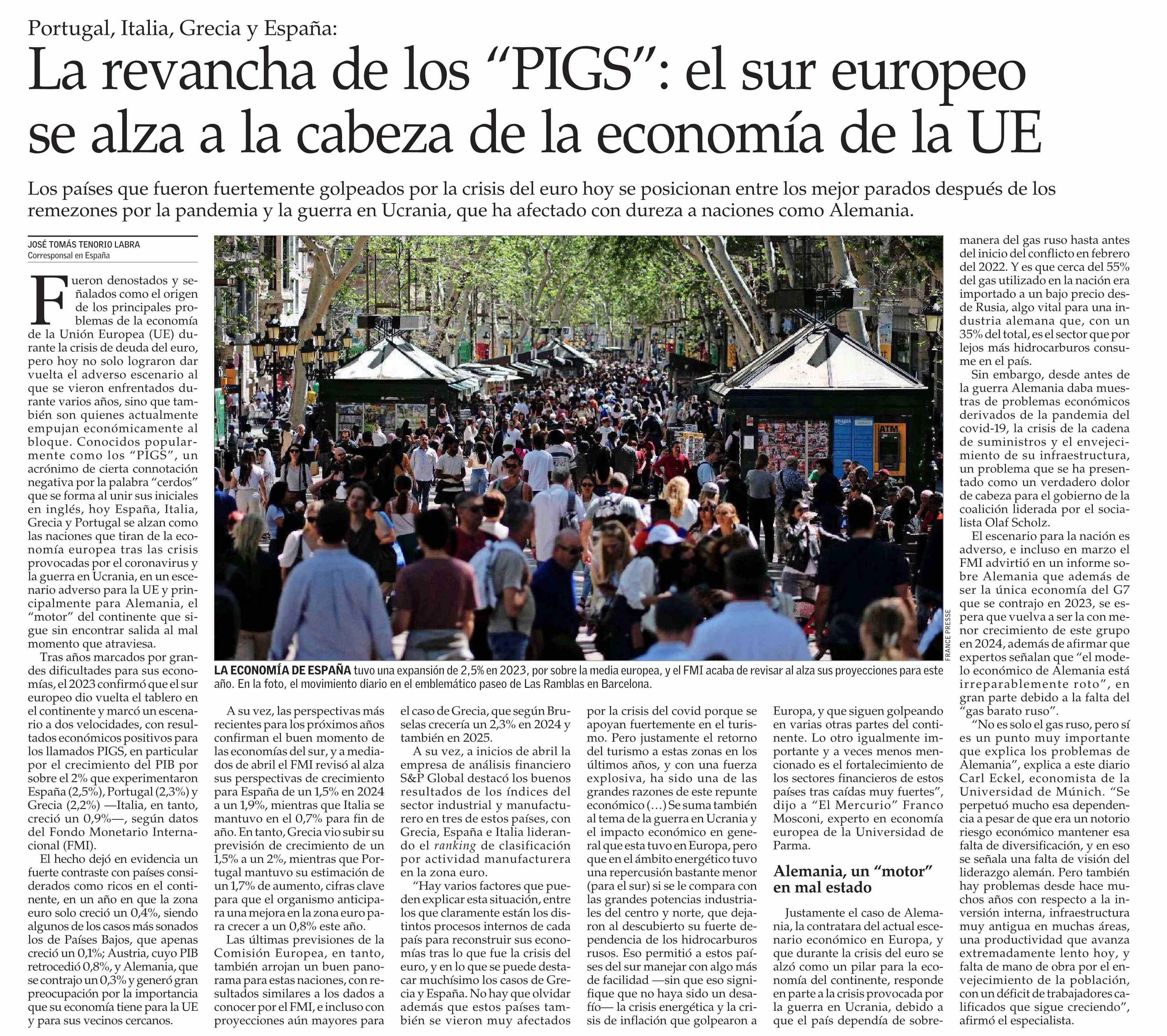 La revancha de los "PIGS": el sur europeo se alza a la cabeza de la economía de la UE 29-04-2024 El Mercurio |