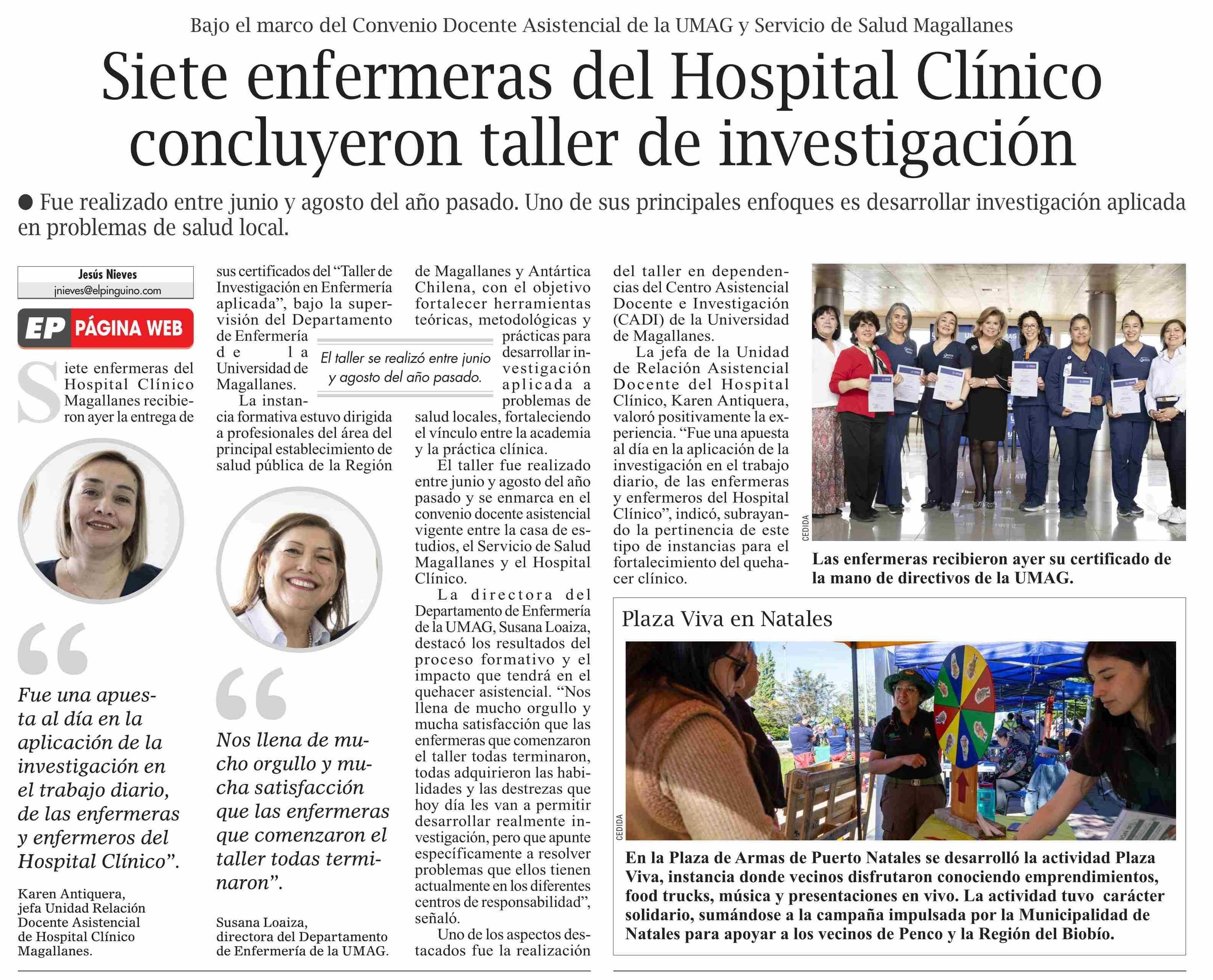 Título: Siete enfermeras del Hospital Clínico concluyeron taller de investigación
