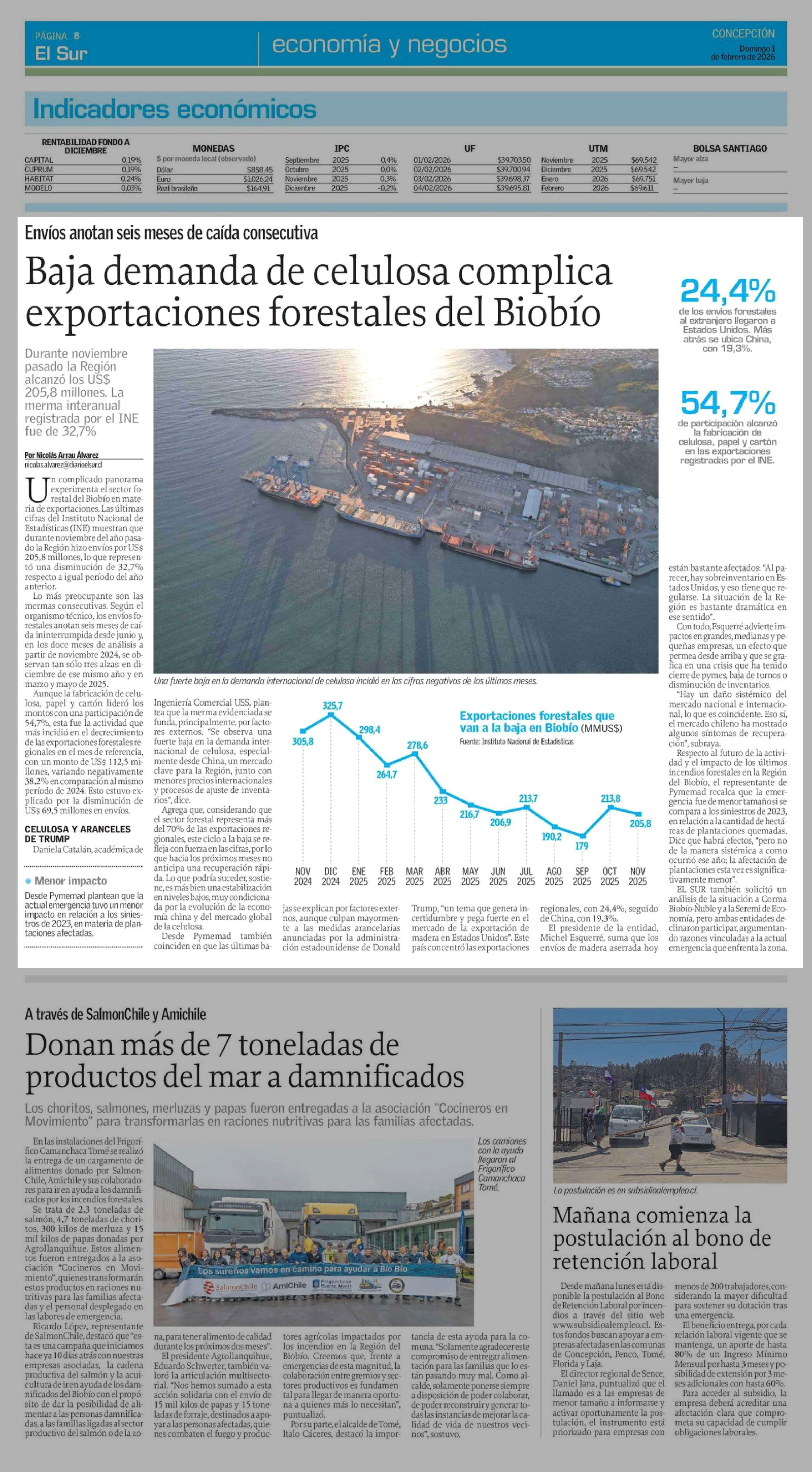 Título: Baja demanda de celulosa complica exportaciones forestales del Biobío