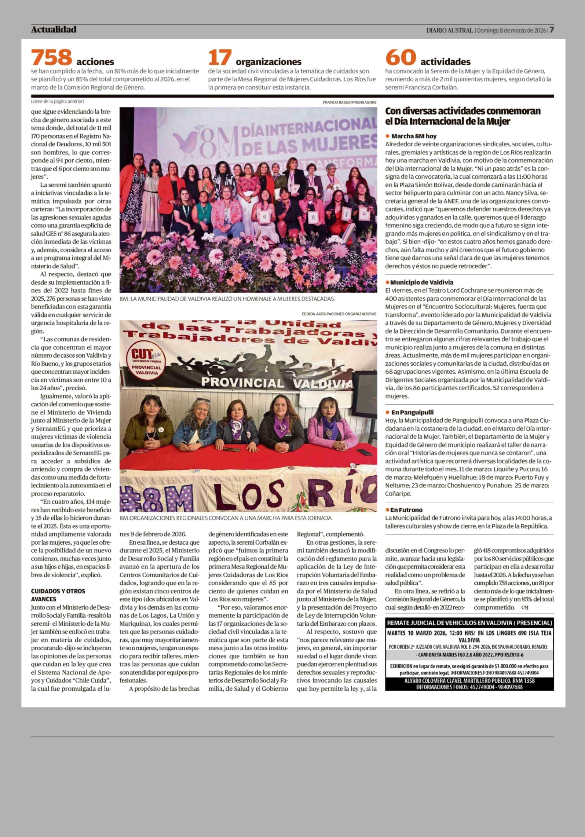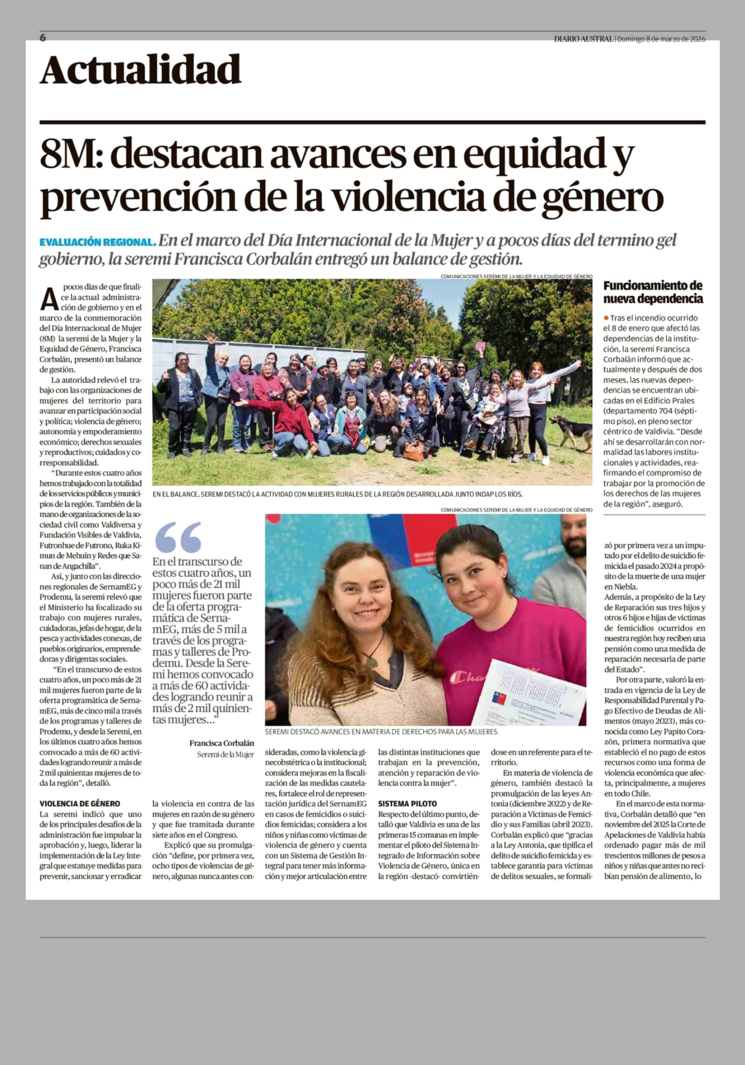 Fecha: 08-03-2026 Sector: Noticia general Región: Región de Los Ríos