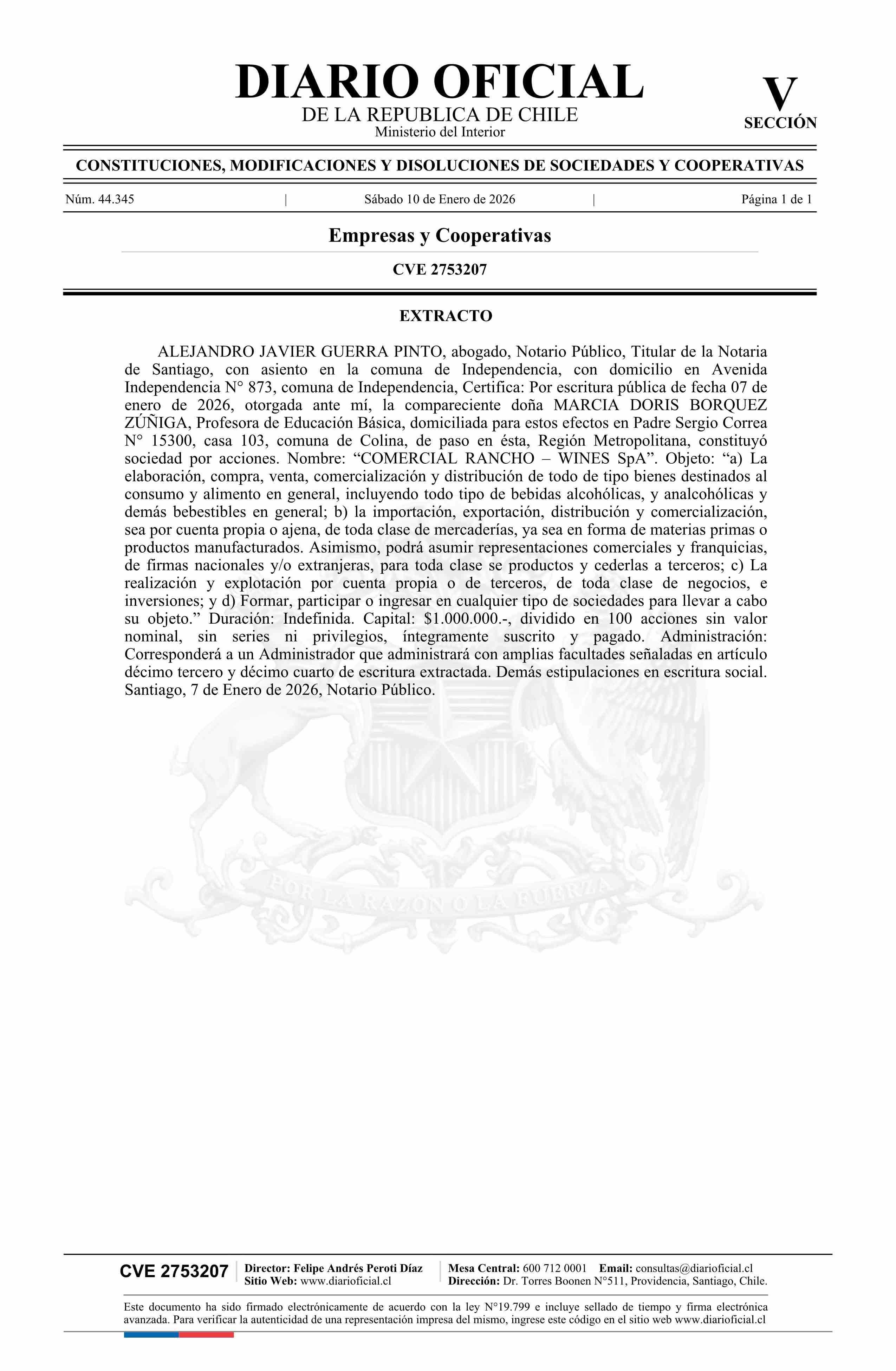 Título: COMERCIAL RANCHO – WINES SpA