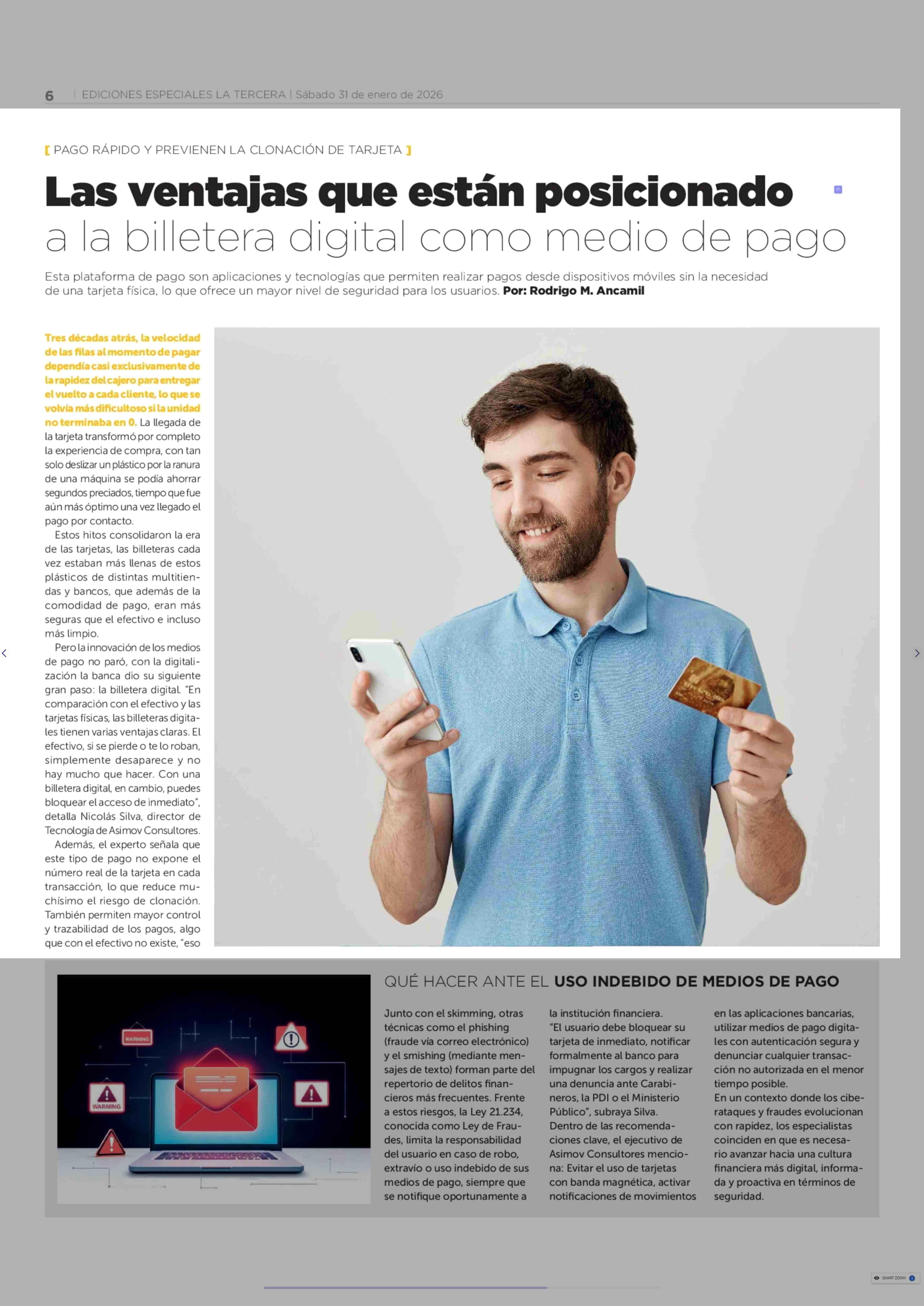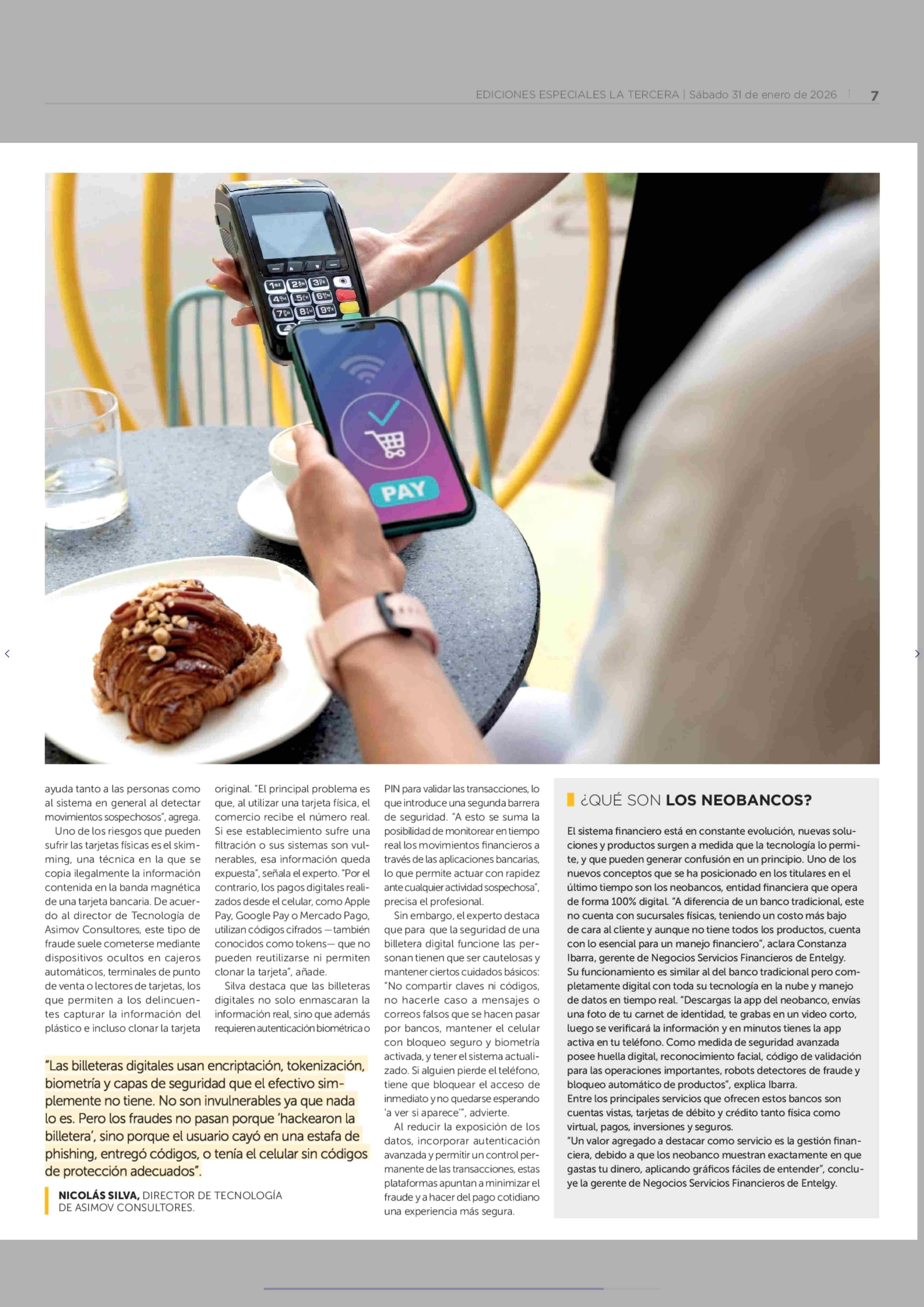 Las ventajas que están posicionado a la billetera digital como medio de pago 31-01-2026 La Tercera |