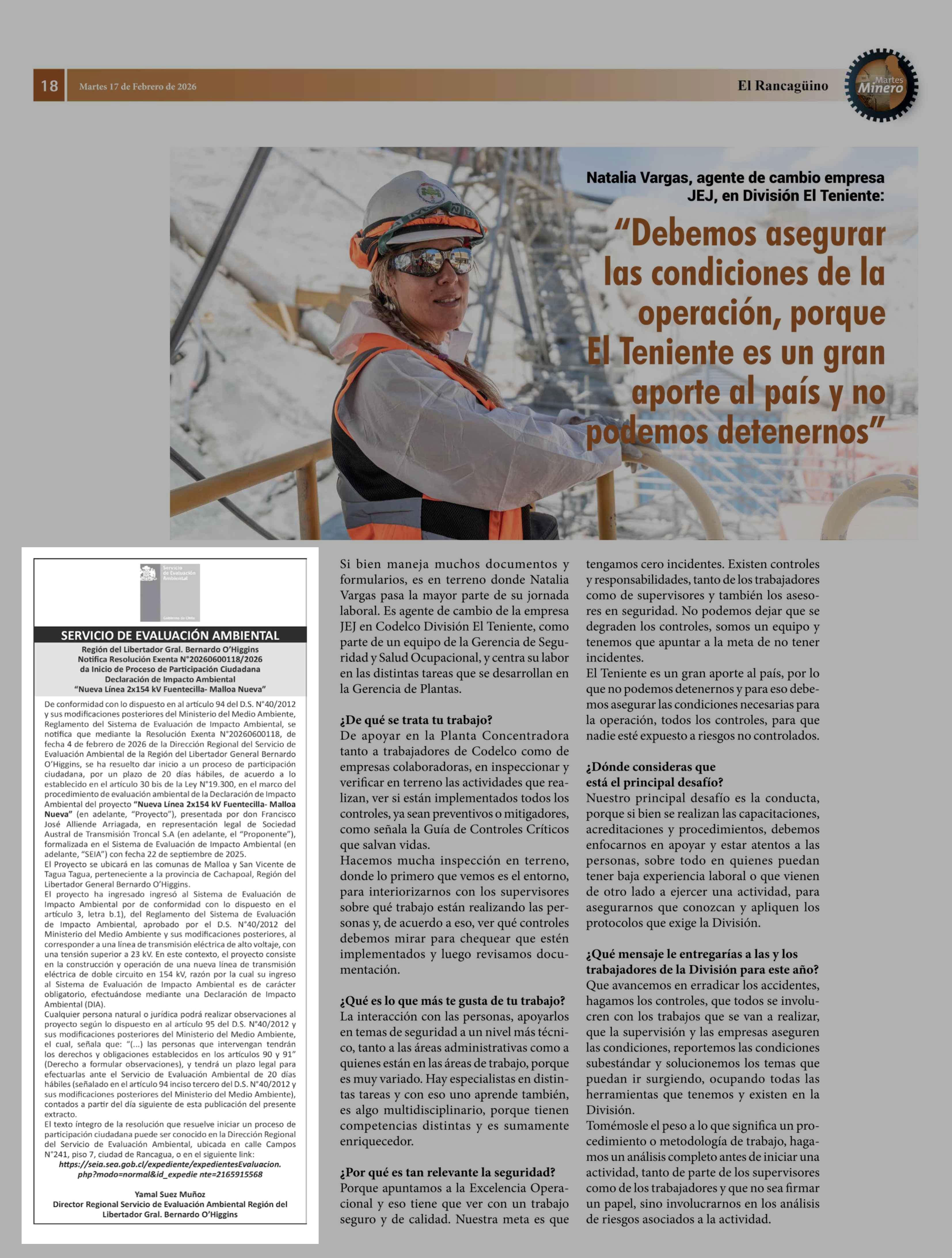 Extractos: SERVICIO DE EVALUACIÓN AMBIENTAL 17-02-2026 El Rancagüino |