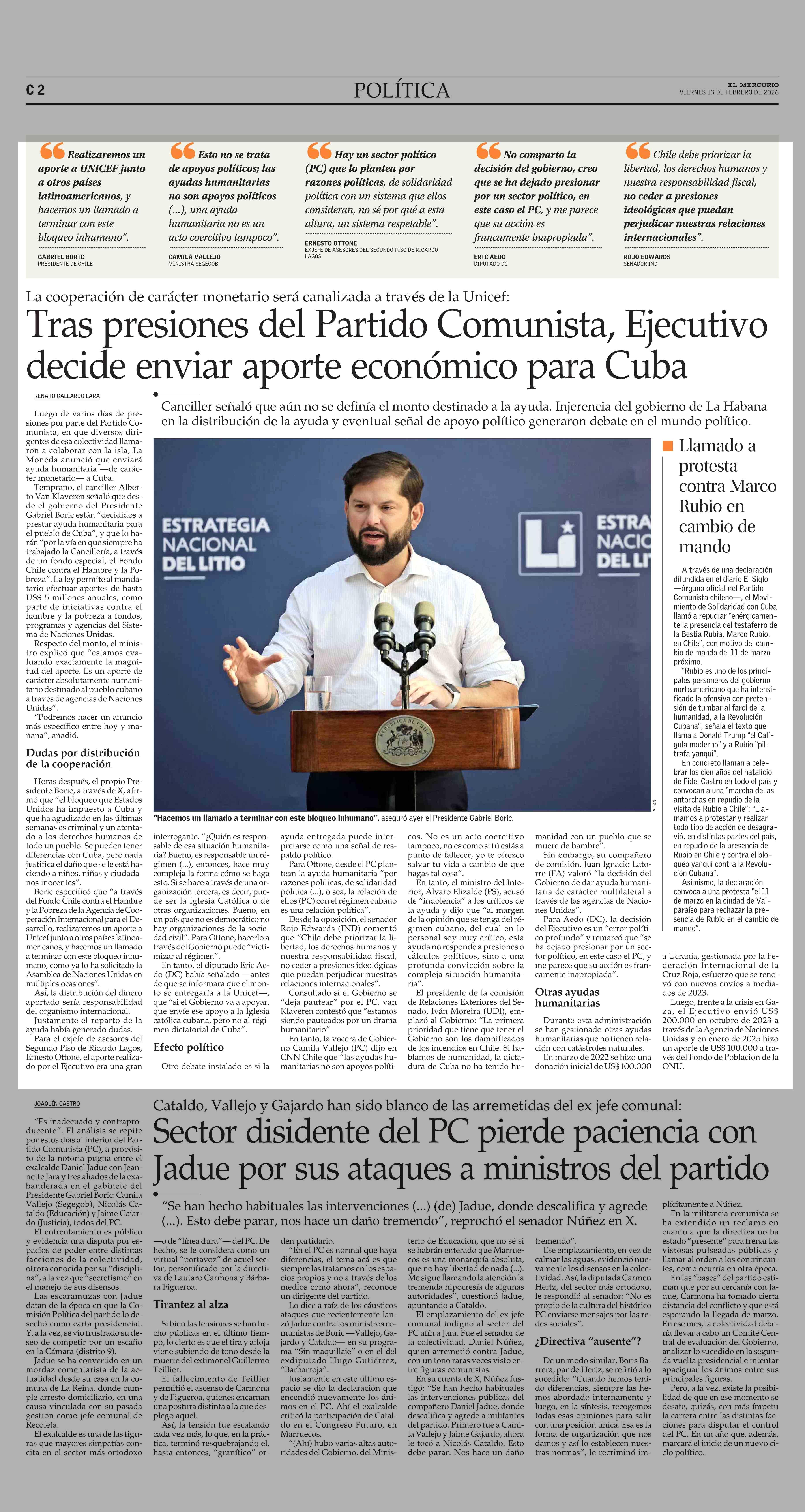 Tras presiones del Partido Comunista, Ejecutivo decide enviar aporte económico para Cuba 13-02-2026 El Mercurio |