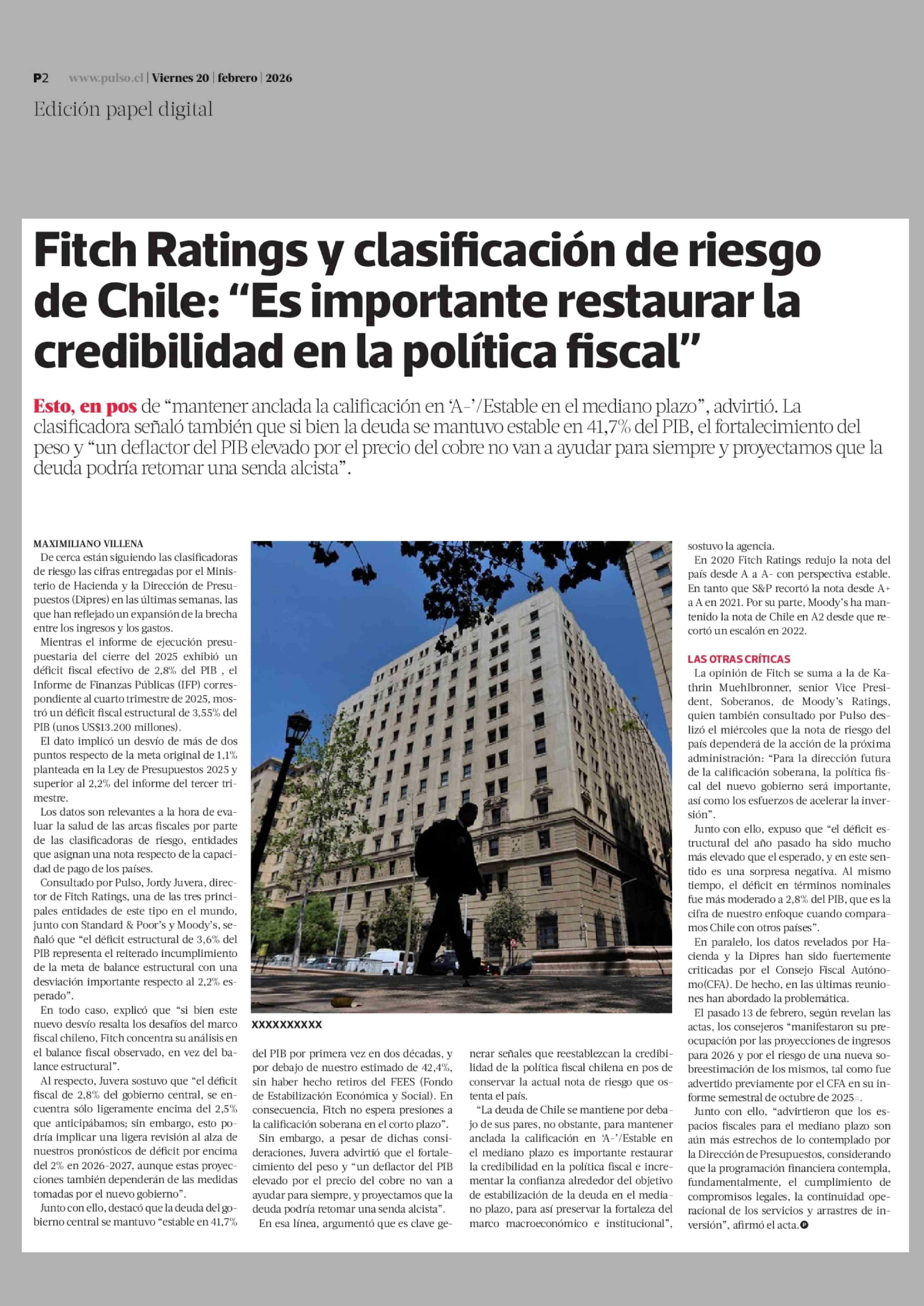 Título: Fitch Ratings y clasificación de riesgo de Chile: "Es importante restaurar la credibilidad en la política fiscal"