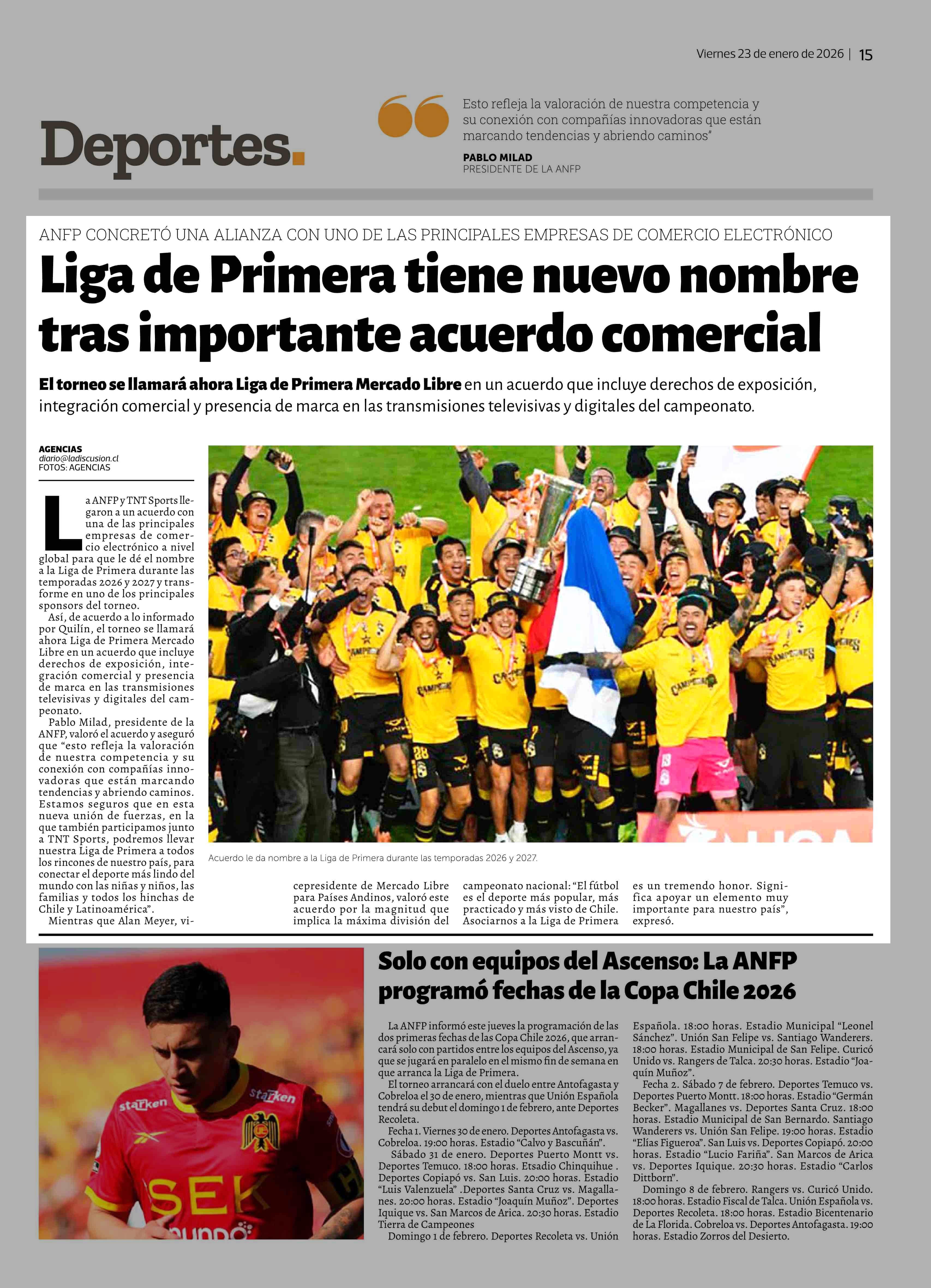 Liga de Primera tiene nuevo nombre tras importante acuerdo comercial 23-01-2026 La Discusión |