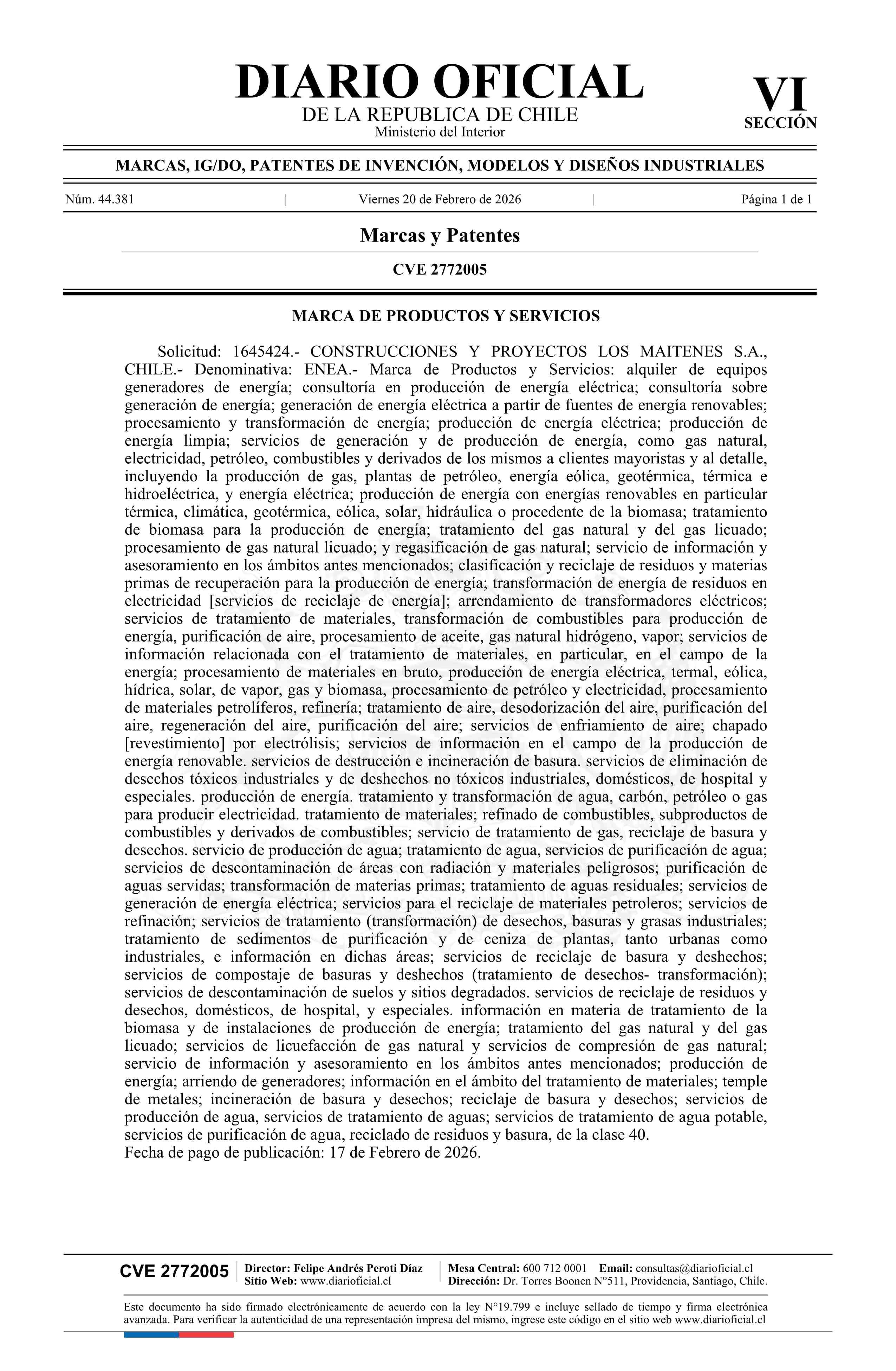 Solicitud número 1645424.- ENEA 20-02-2026 Diario Oficial Edición Electrónica |