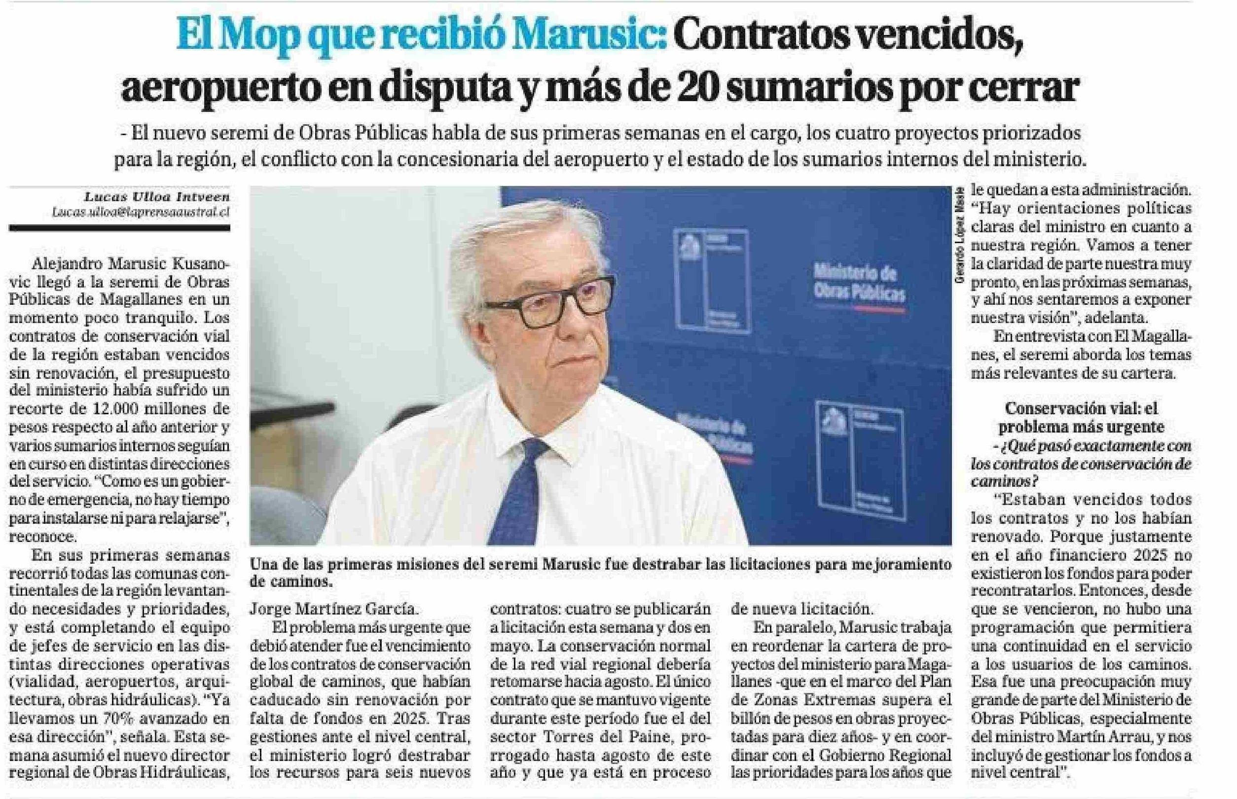 Título: El Mop que recibió Marusic: Contratos vencidos, aeropuerto en disputa y más de 20 sumarios por cerrar