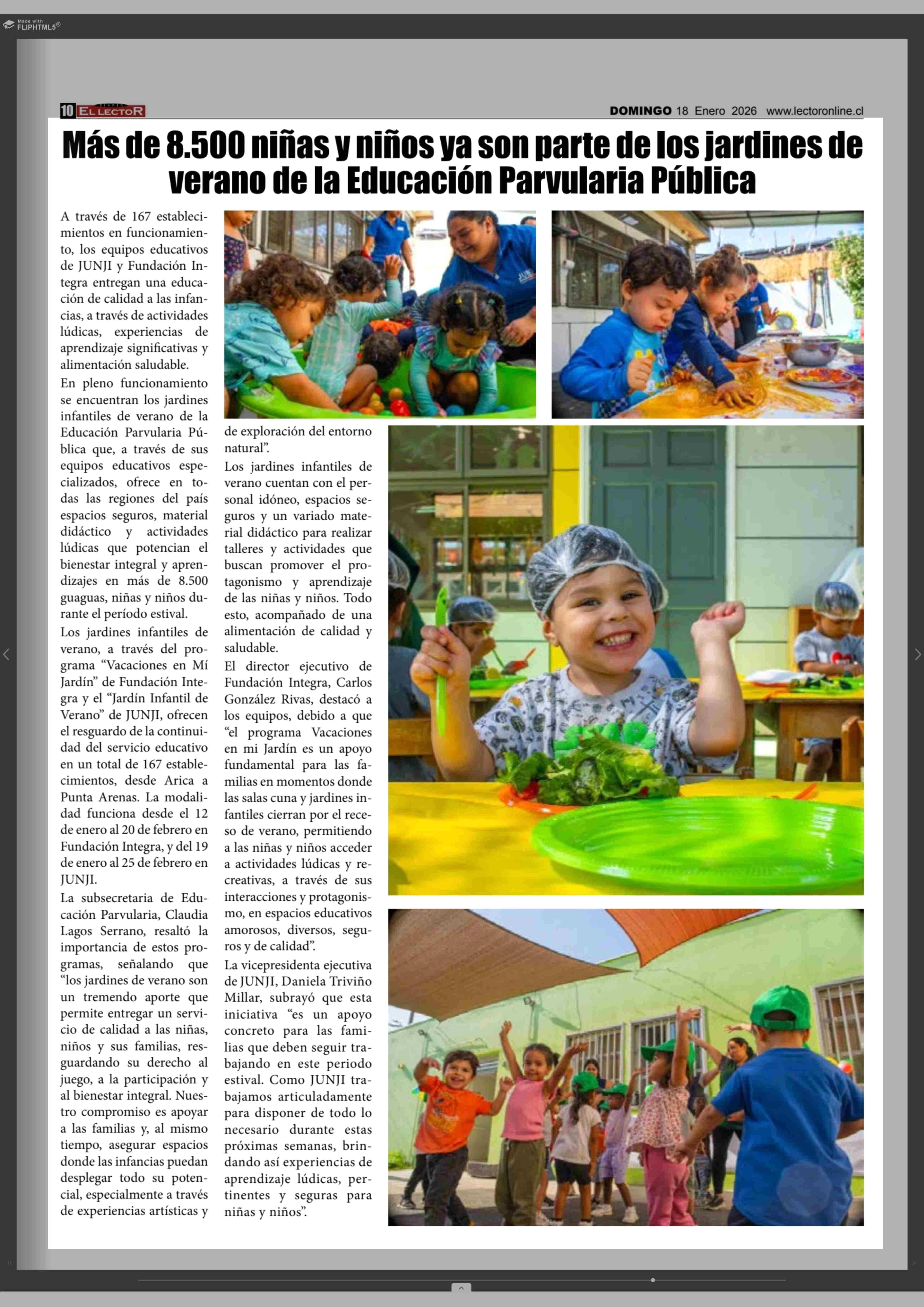 Más de 8.500 niñas y niños ya son parte de los jardines de verano de la Educación Parvularia Pública 18-01-2026 El Lector |