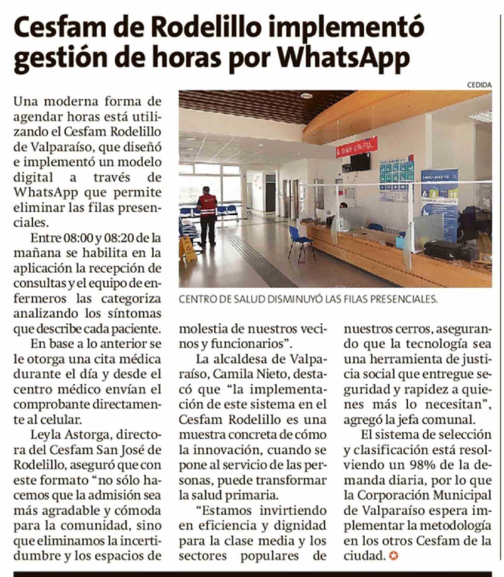 | Título: | Cesfam de Rodelillo implementó gestión de horas por WhatsApp |