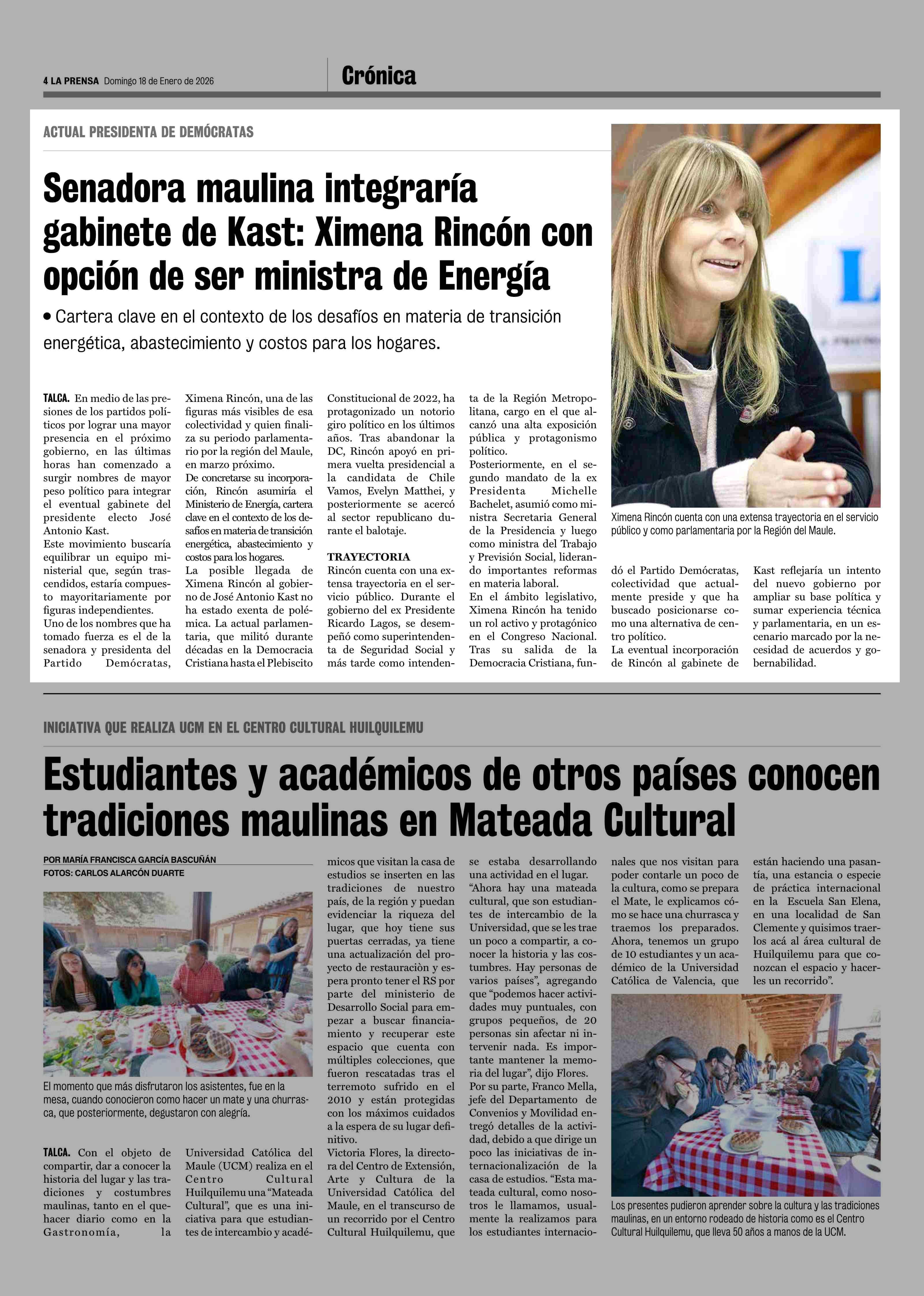 | Fecha: | 18-01-2026 | Sector: | Noticia general | Región: | Región del Maule |