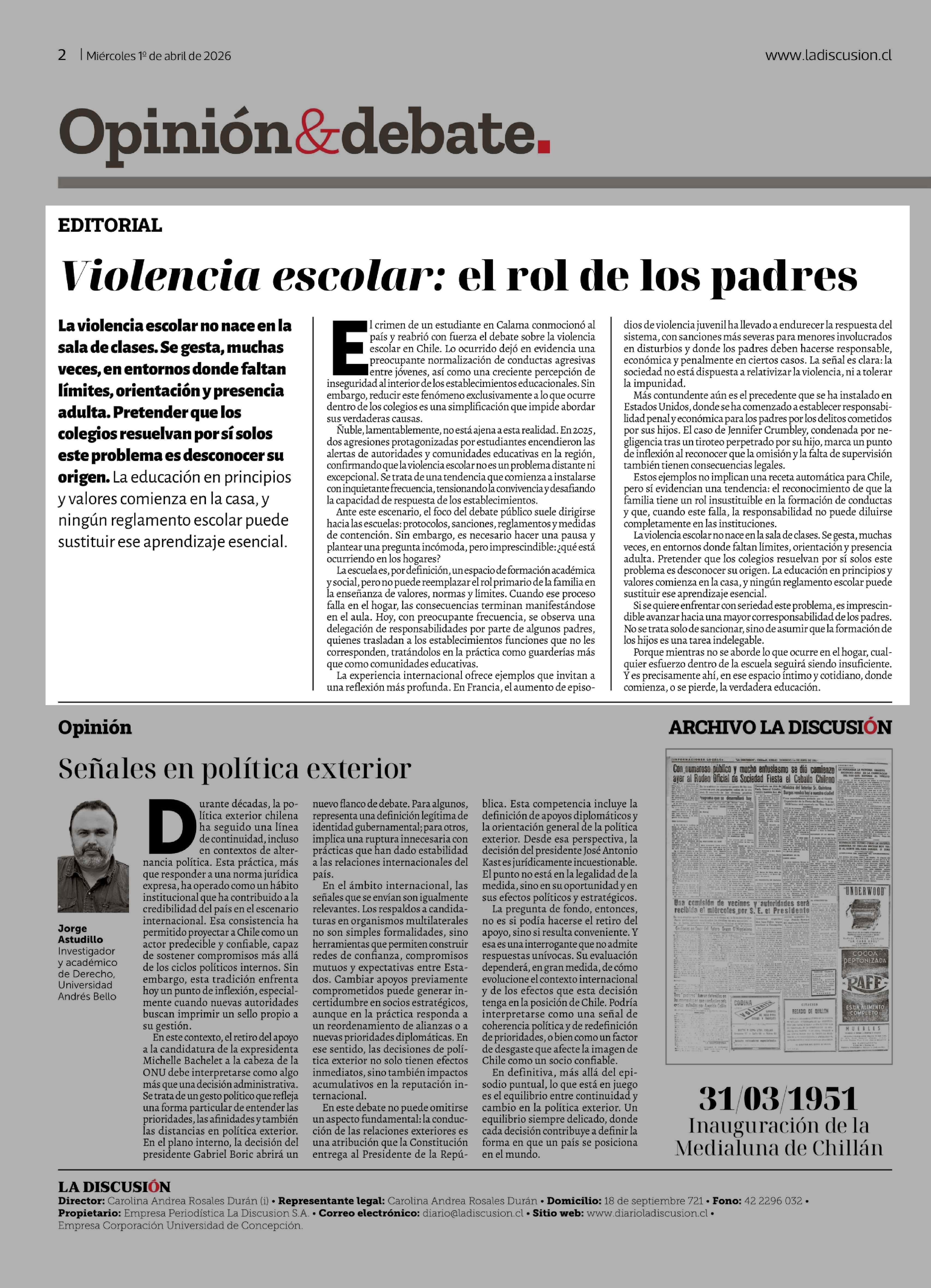 Fecha: 01-04-2026 Sector: Editorial Región: Región del Ñuble
