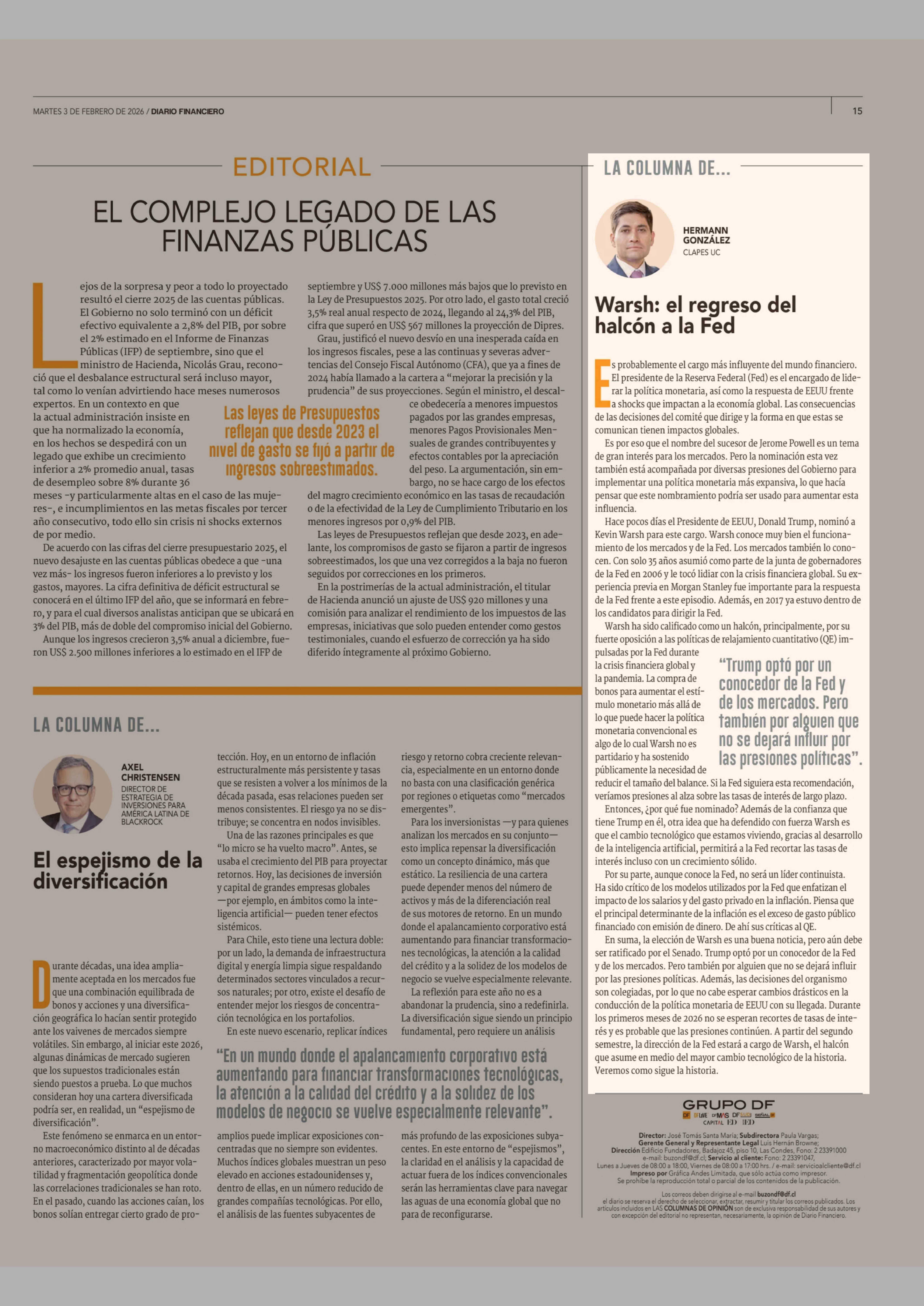 Columnas de Opinión: Warsh: el regreso del halcón a la Fed 03-02-2026 Diario Financiero |