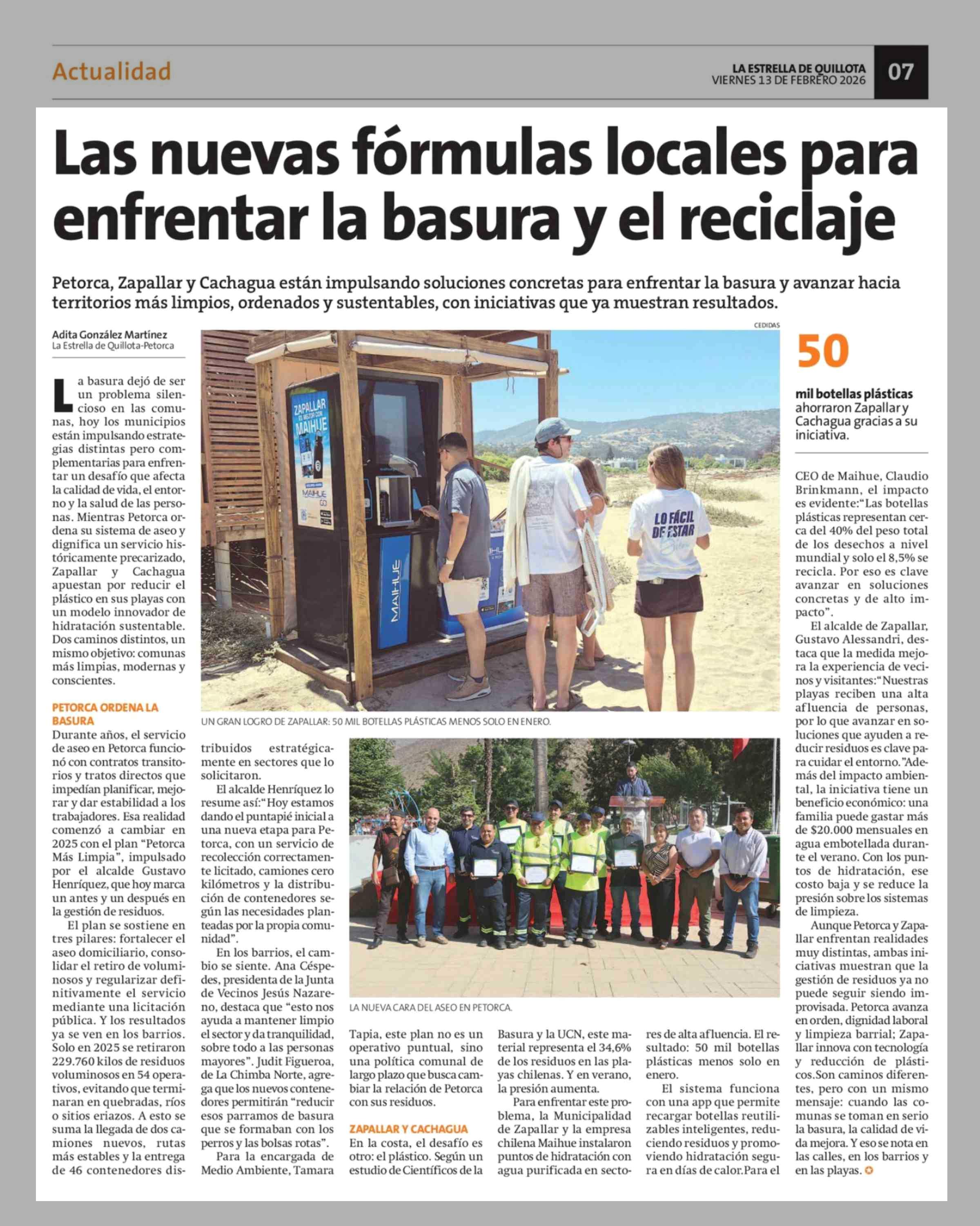 Las nuevas fórmulas locales para enfrentar la basura y el reciclaje 13-02-2026 La Estrella de Quillota |