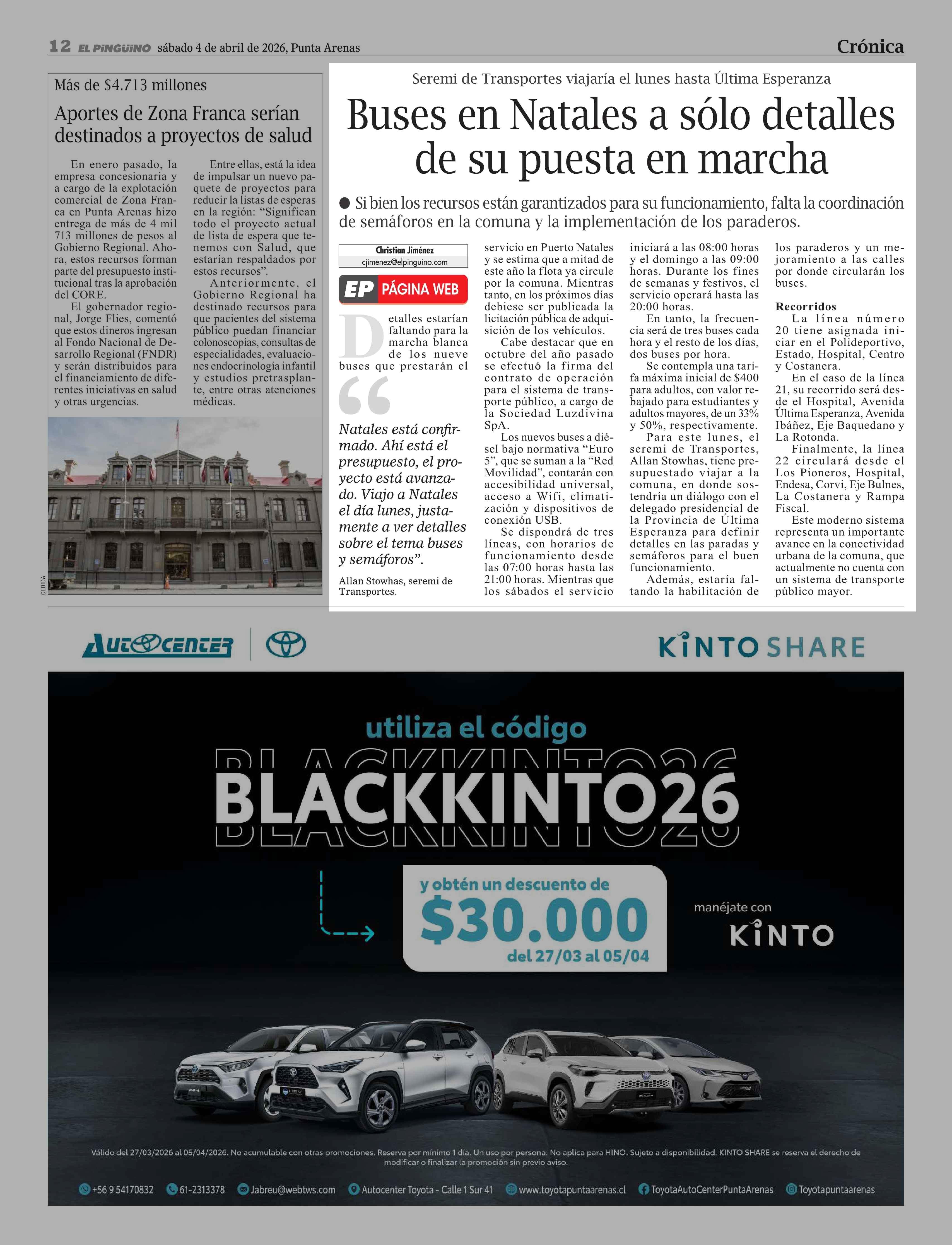 Buses en Natales a sólo detalles de su puesta en marcha 04-04-2026 El Pingüino |