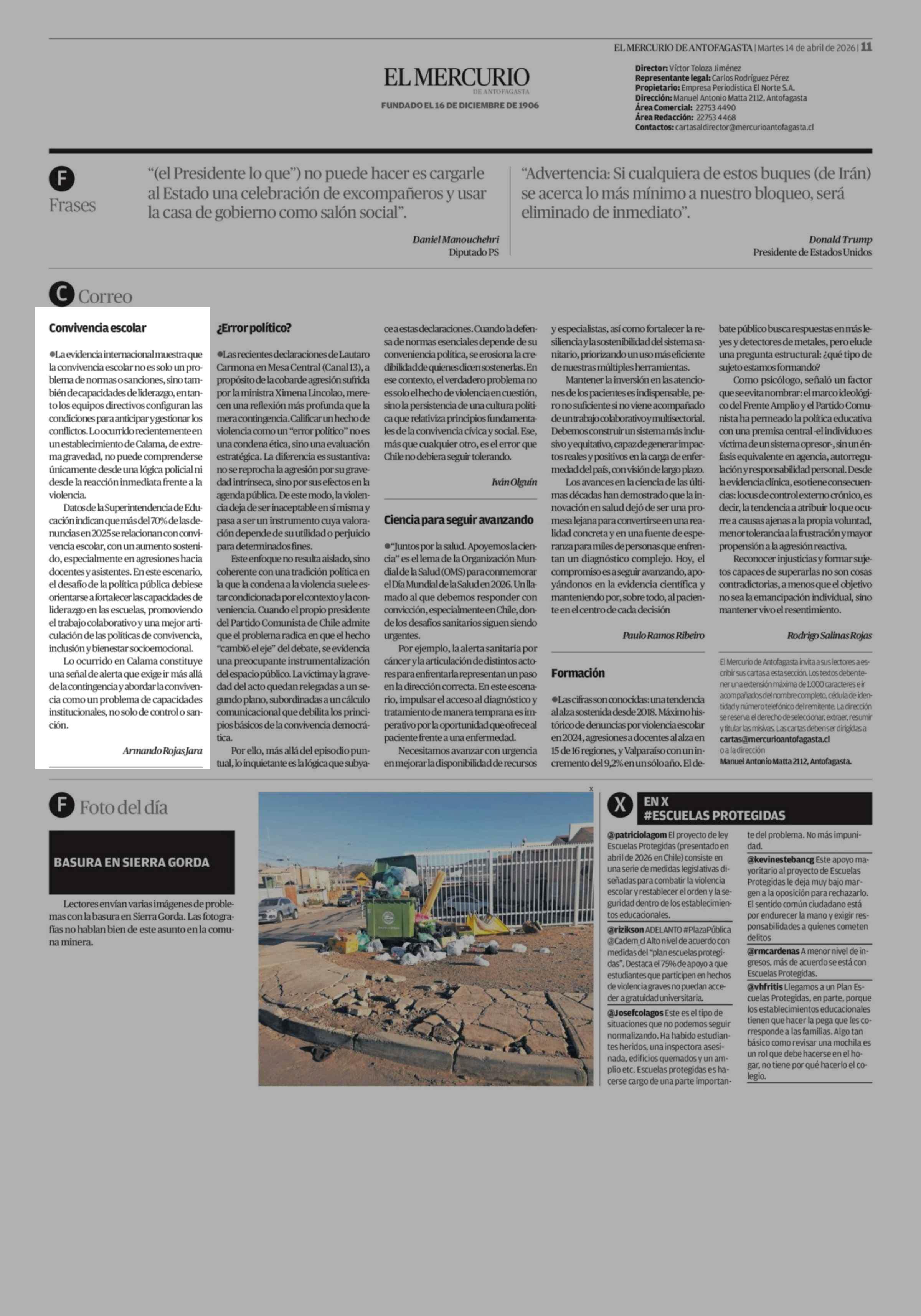 Fuente: El Mercurio de Antofagasta (El Mercurio de Antofagasta) Página(s): 11