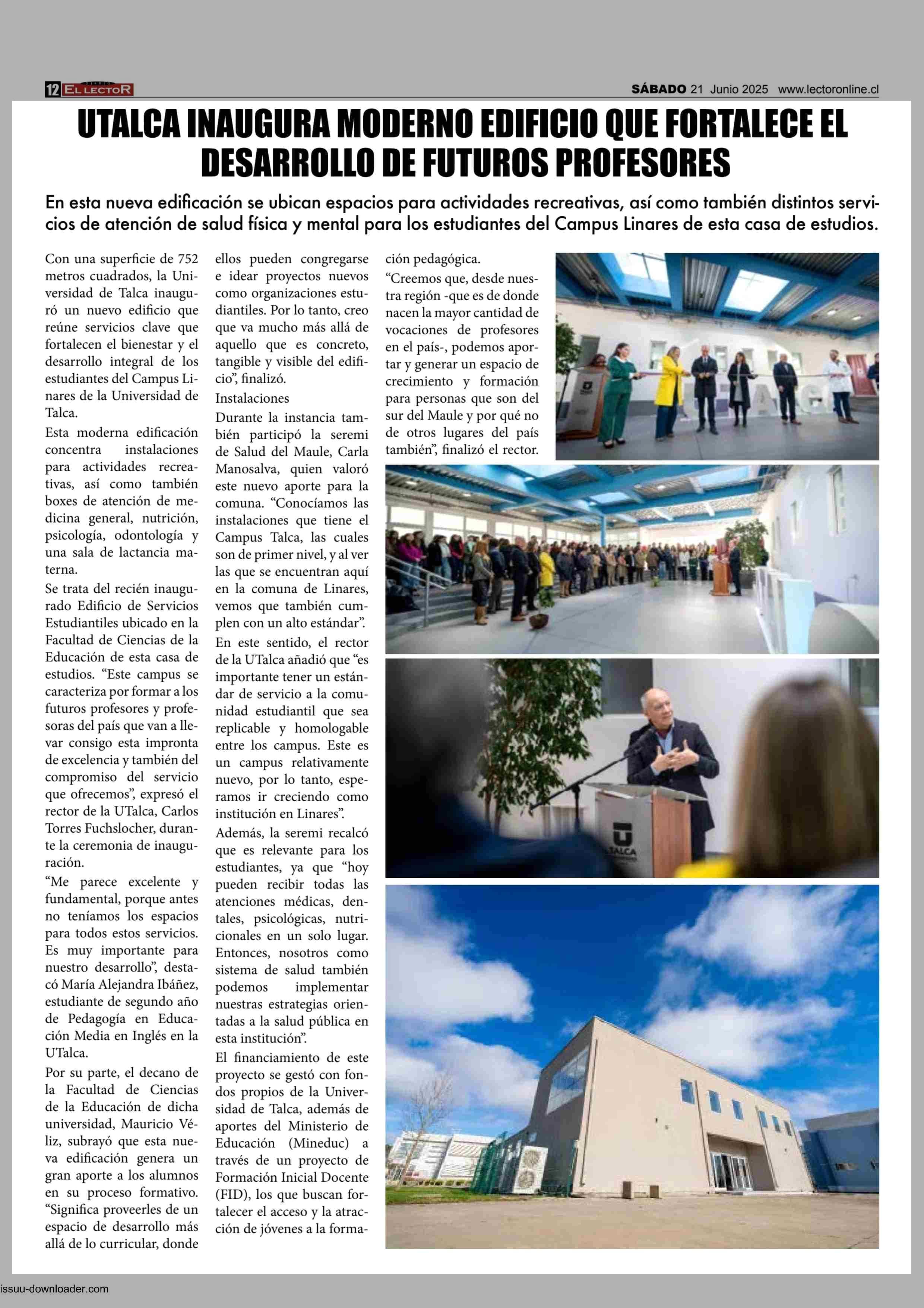 UTALCA INAUGURA MODERNO EDIFICIO QUE FORTALECE El DESARROLLO DE FUTUROS PROFESORES 21-06-2025 El Lector |