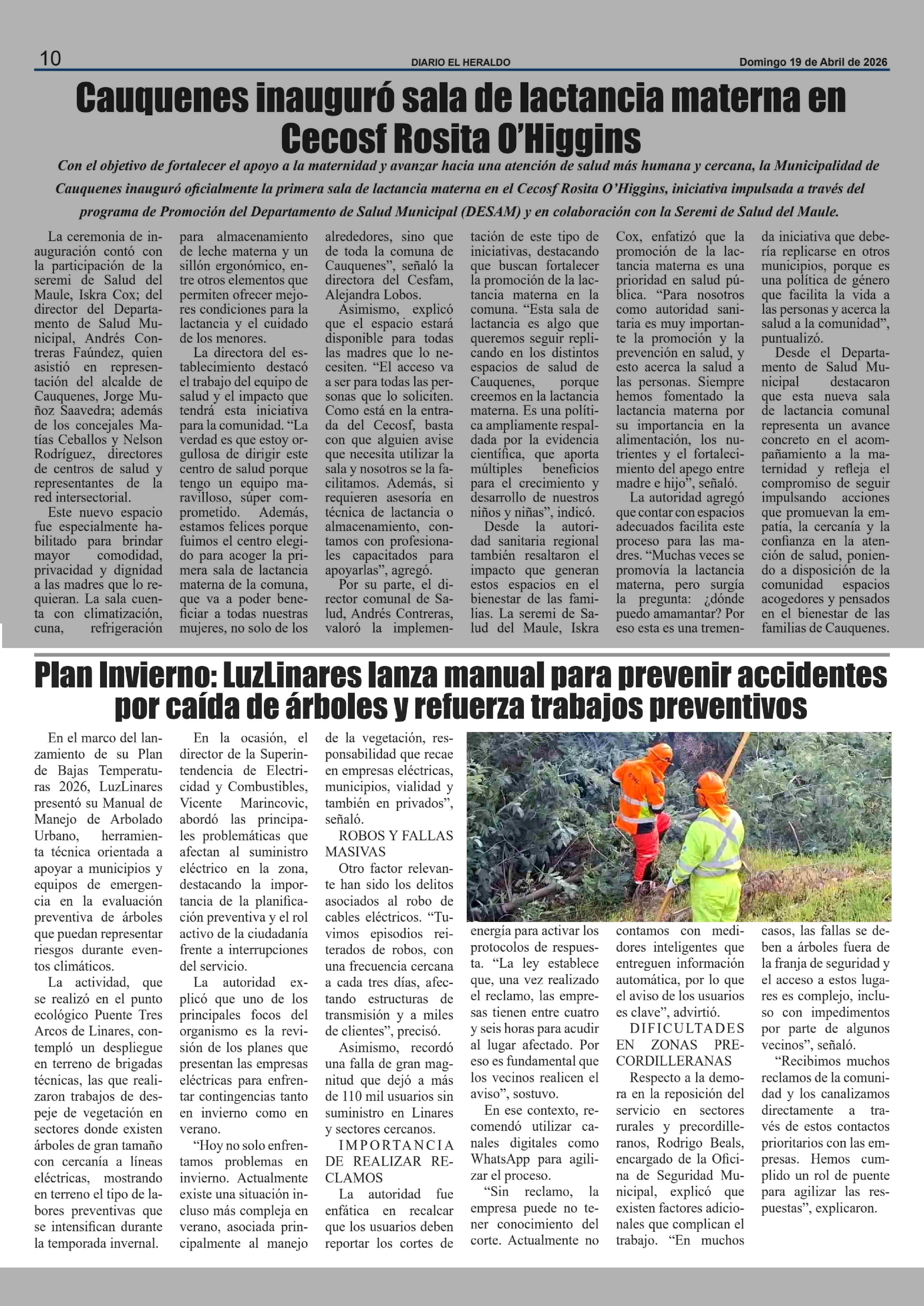 Plan invierno: LuzLinares lanza manual para prevenir accidentes por caída de árboles y refuerza trabajos preventivos 19-04-2026 El Heraldo |