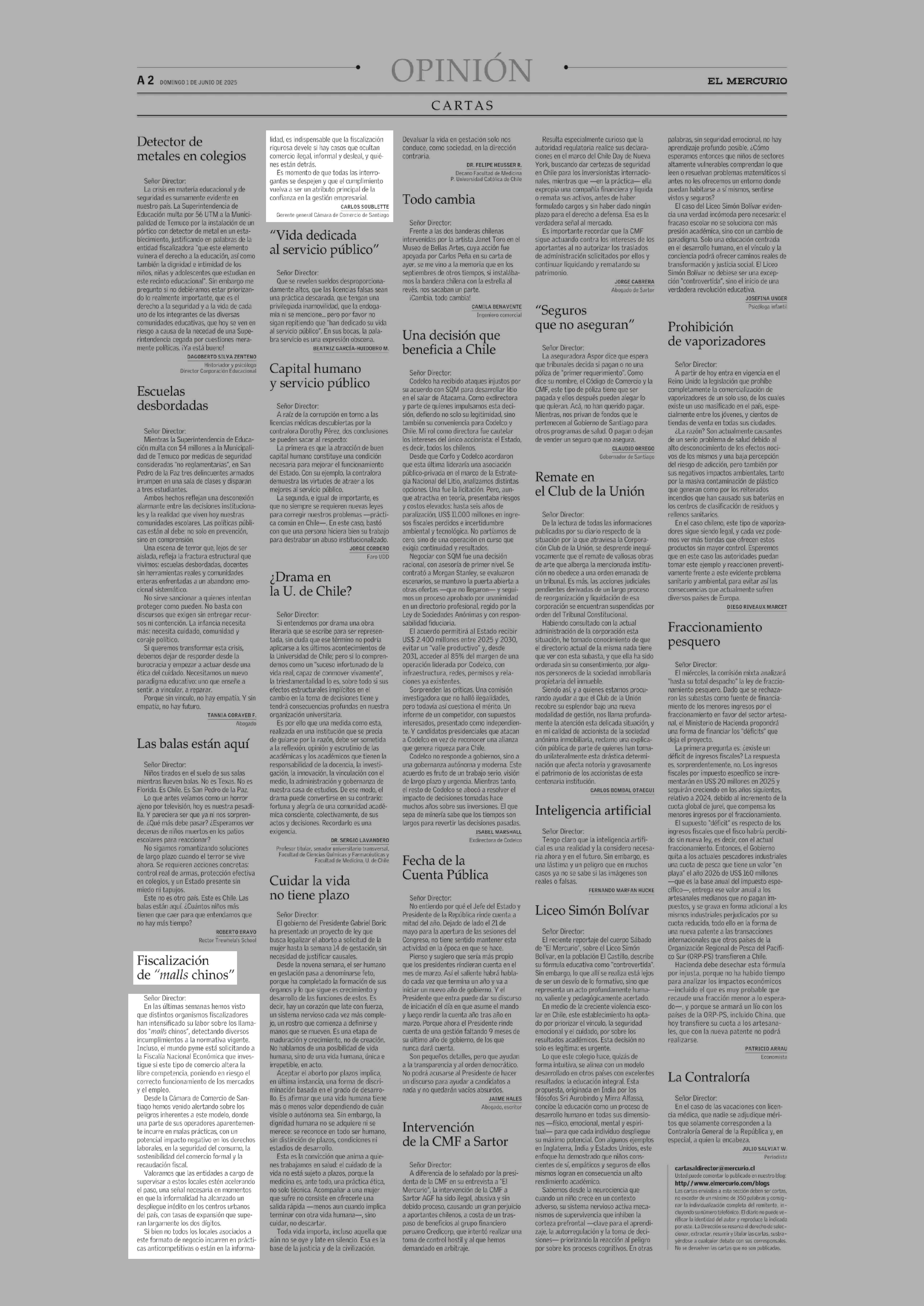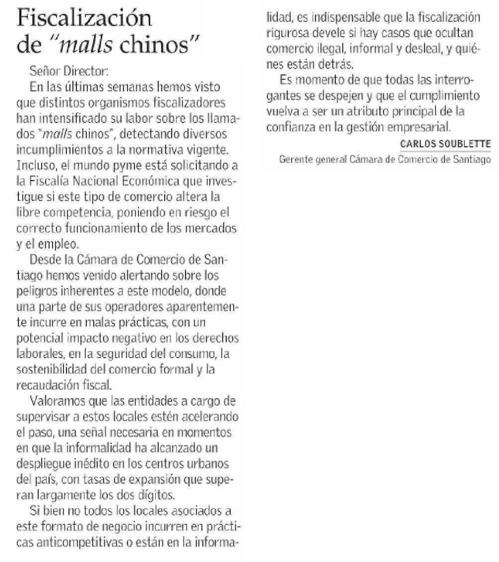 Fiscalización de “malls chinos” 01-06-2025 El Mercurio |