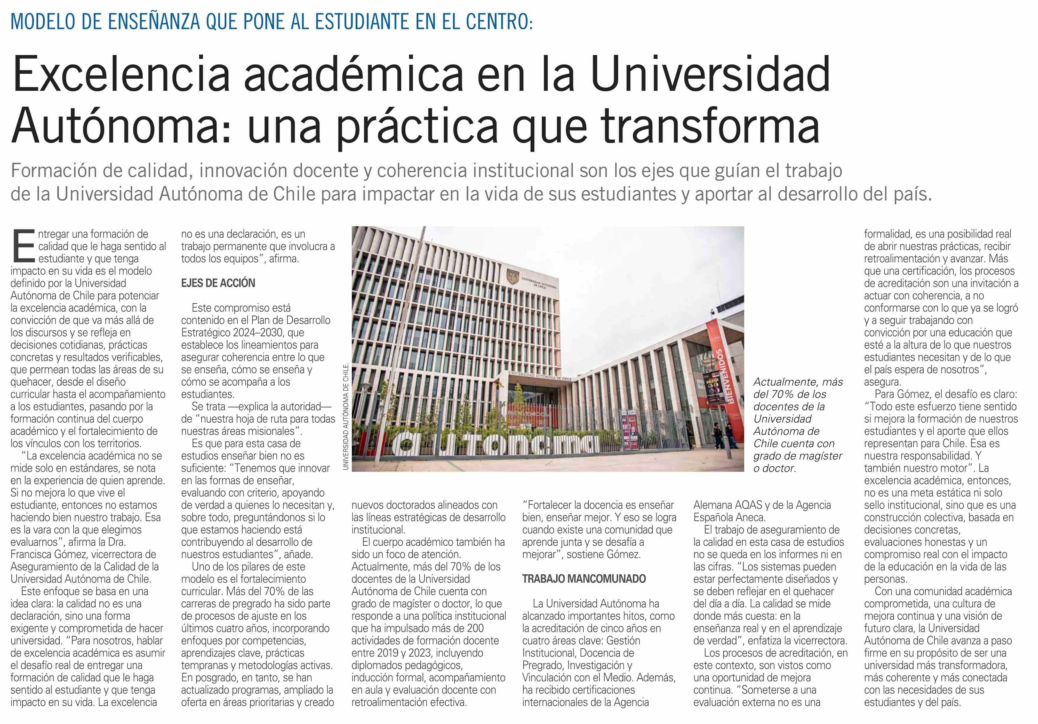 Excelencia académica en la Universidad Autónoma: una práctica que transforma 29-05-2025 El Mercurio |