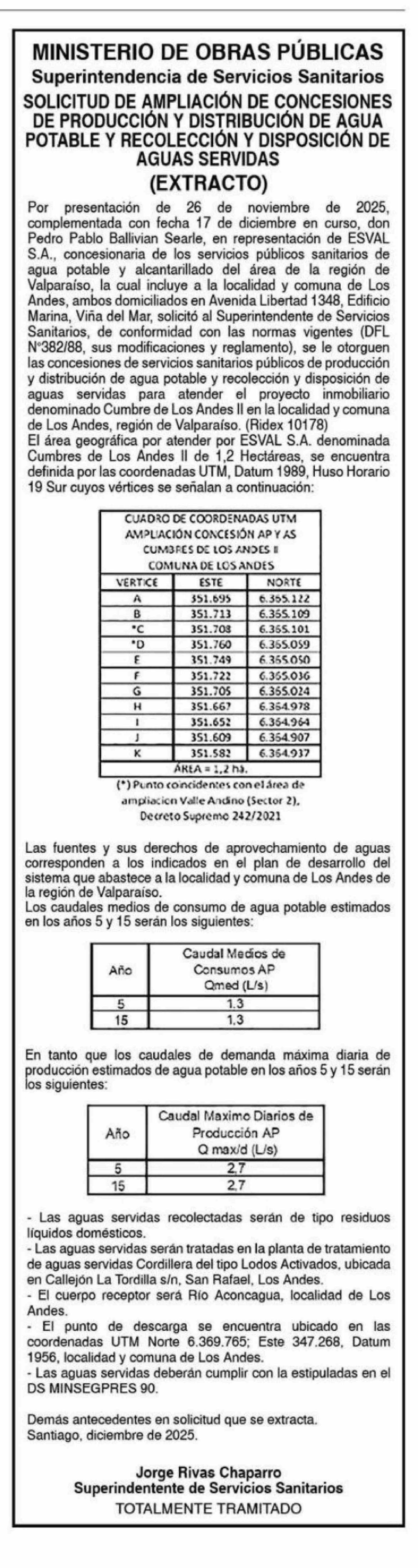 Extractos: MINISTERIO DE OBRAS PÚBLICAS