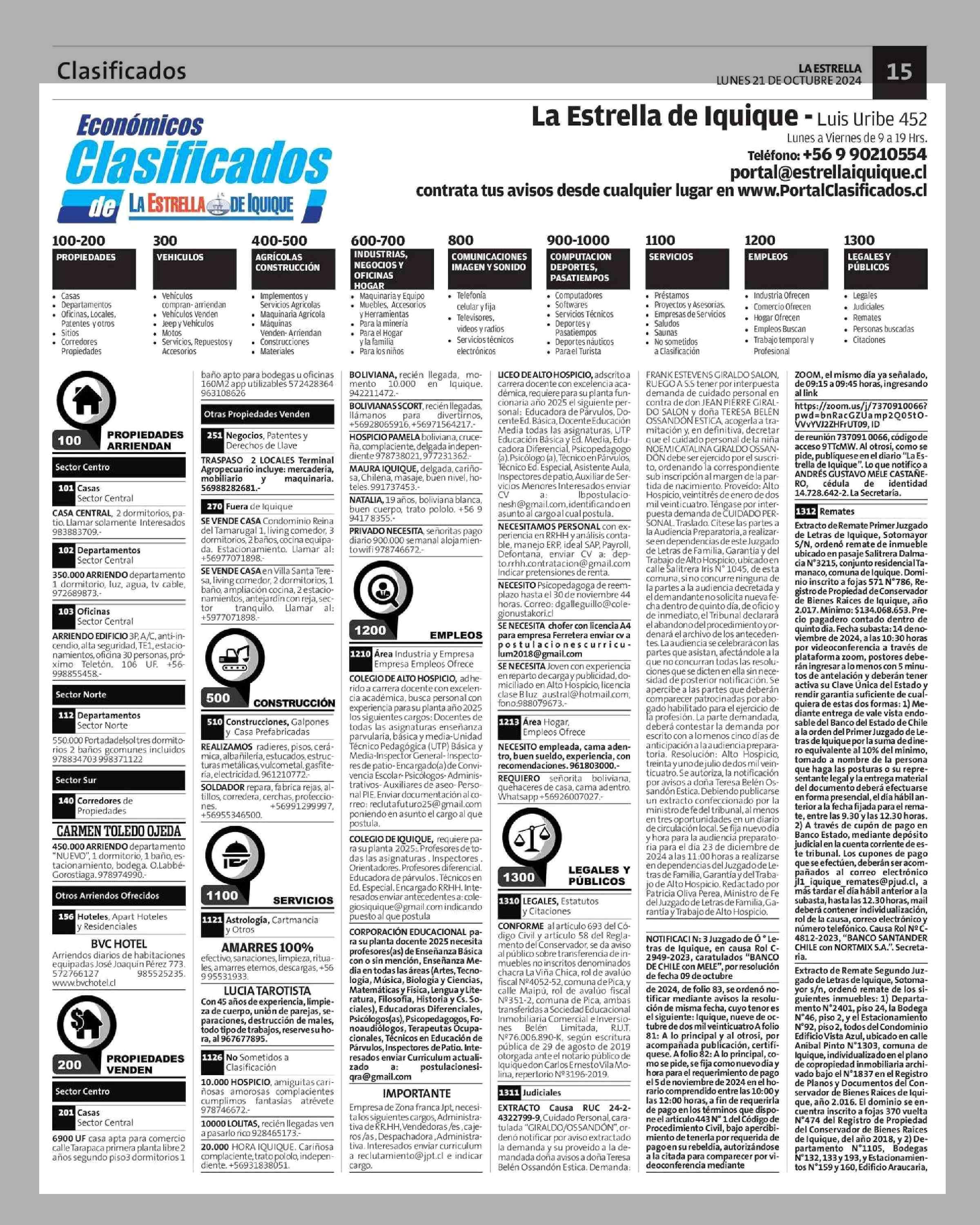 Aviso Publicitario 21-10-2024 La Estrella de Iquique |