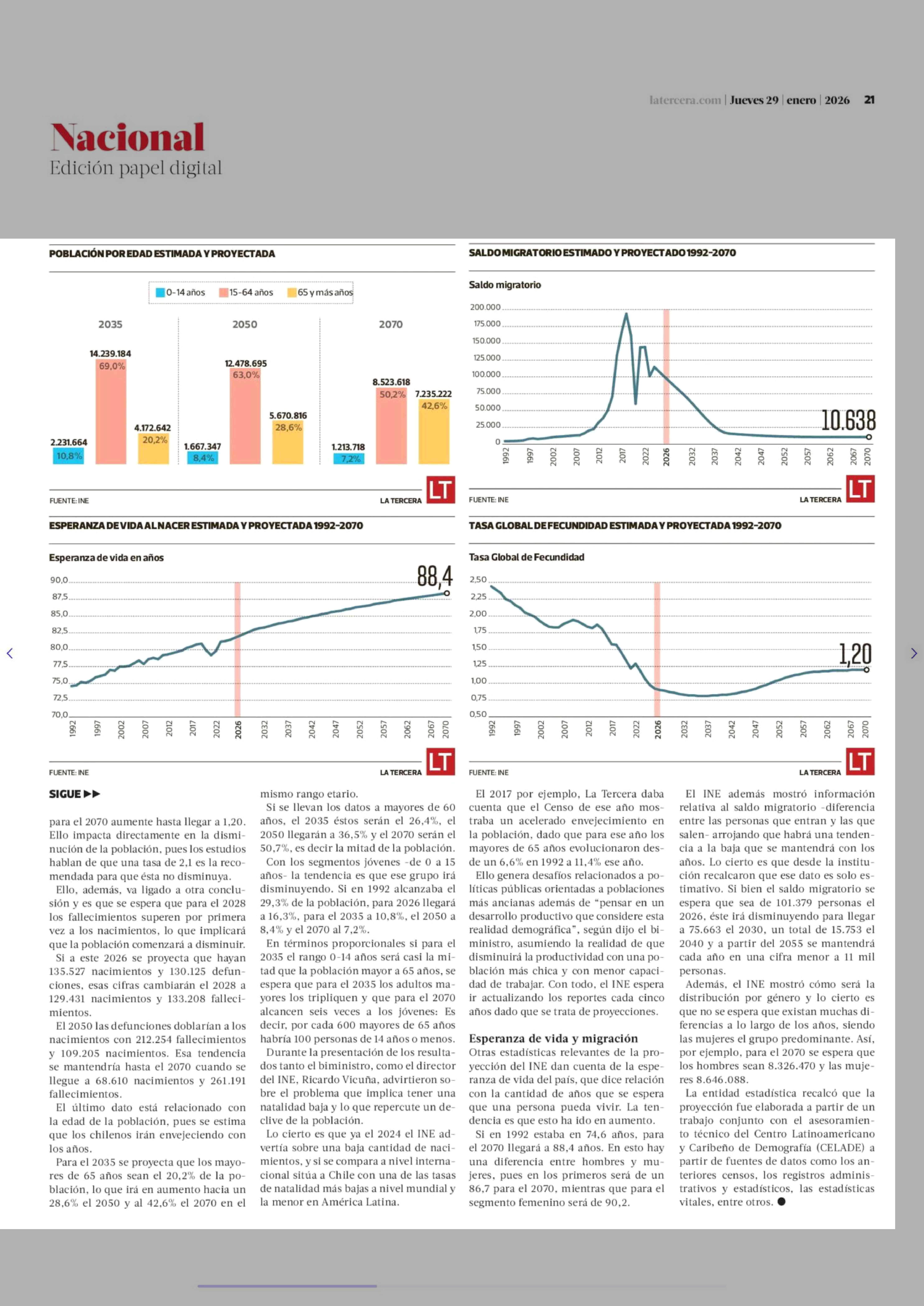 Título: INE proyecta que población chilena llegará a 20.150.948 en 2026, pero irá disminuyendo y envejeciendo