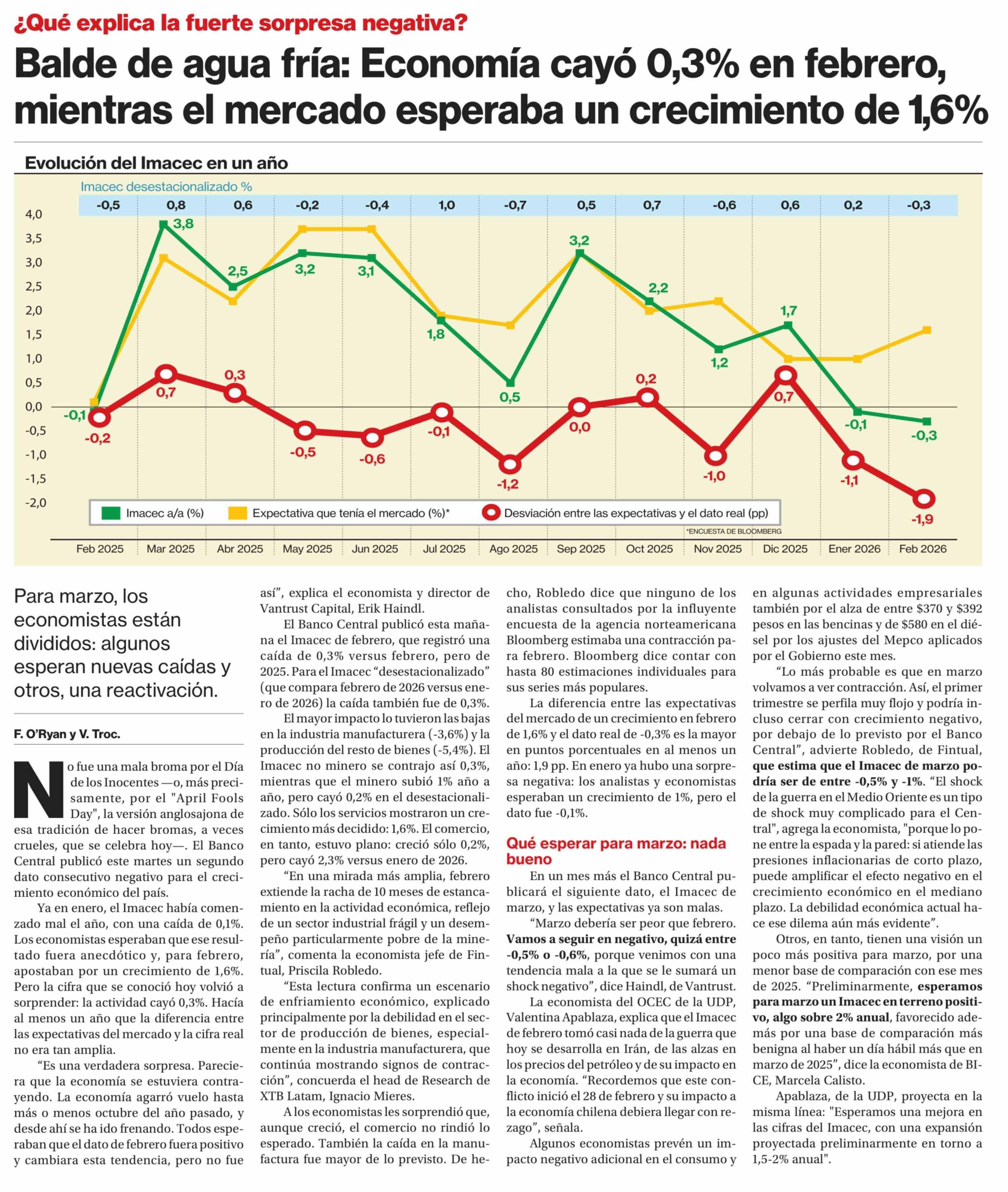 | Título: | Balde de agua fría: Economía cayó 0,3% en febrero, mientras el mercado esperaba un crecimiento de 1,6% |