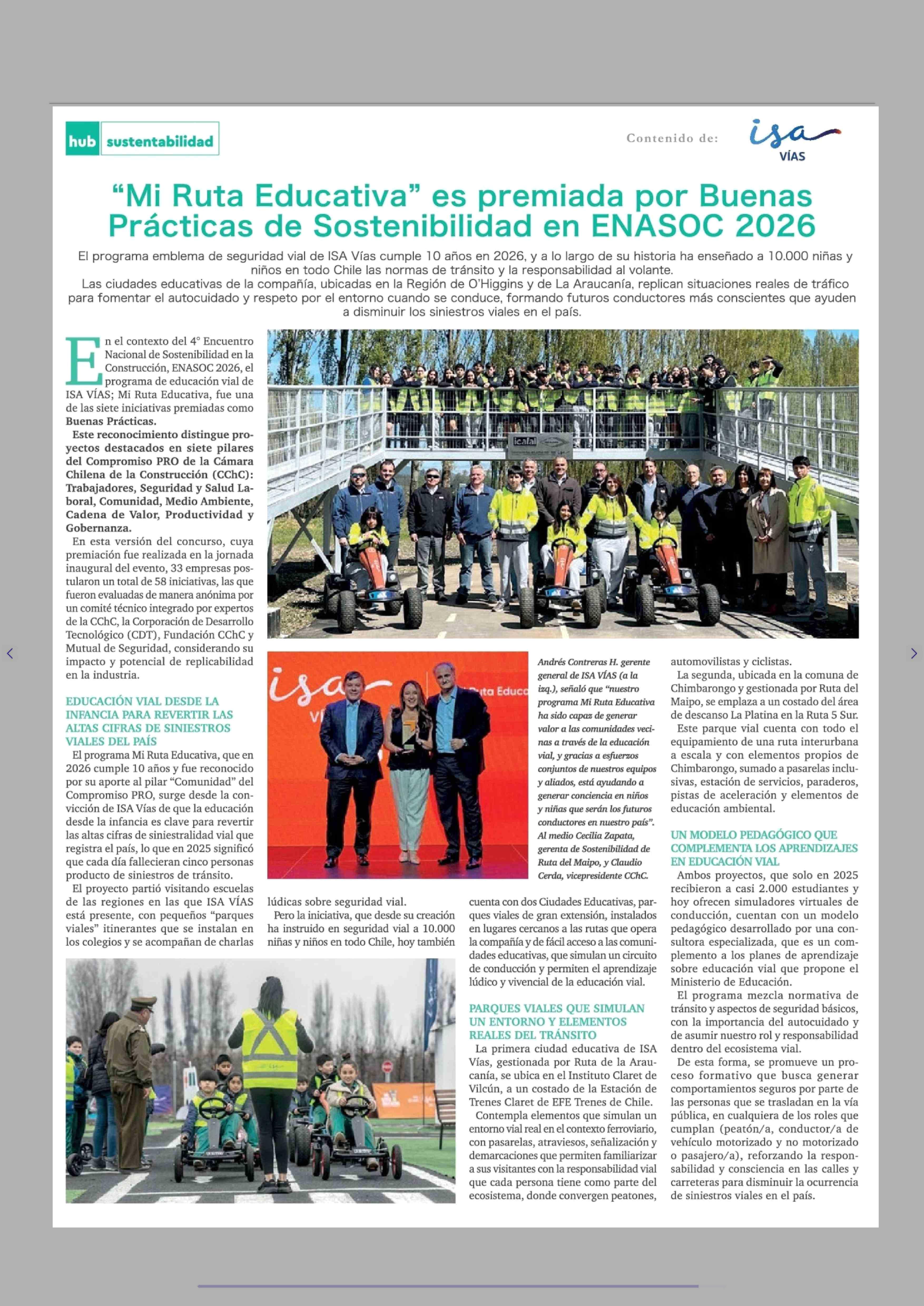 Título: "Mi Ruta Educativa" es premiada por Buenas Prácticas de Sostenibilidad en ENASOC 2026