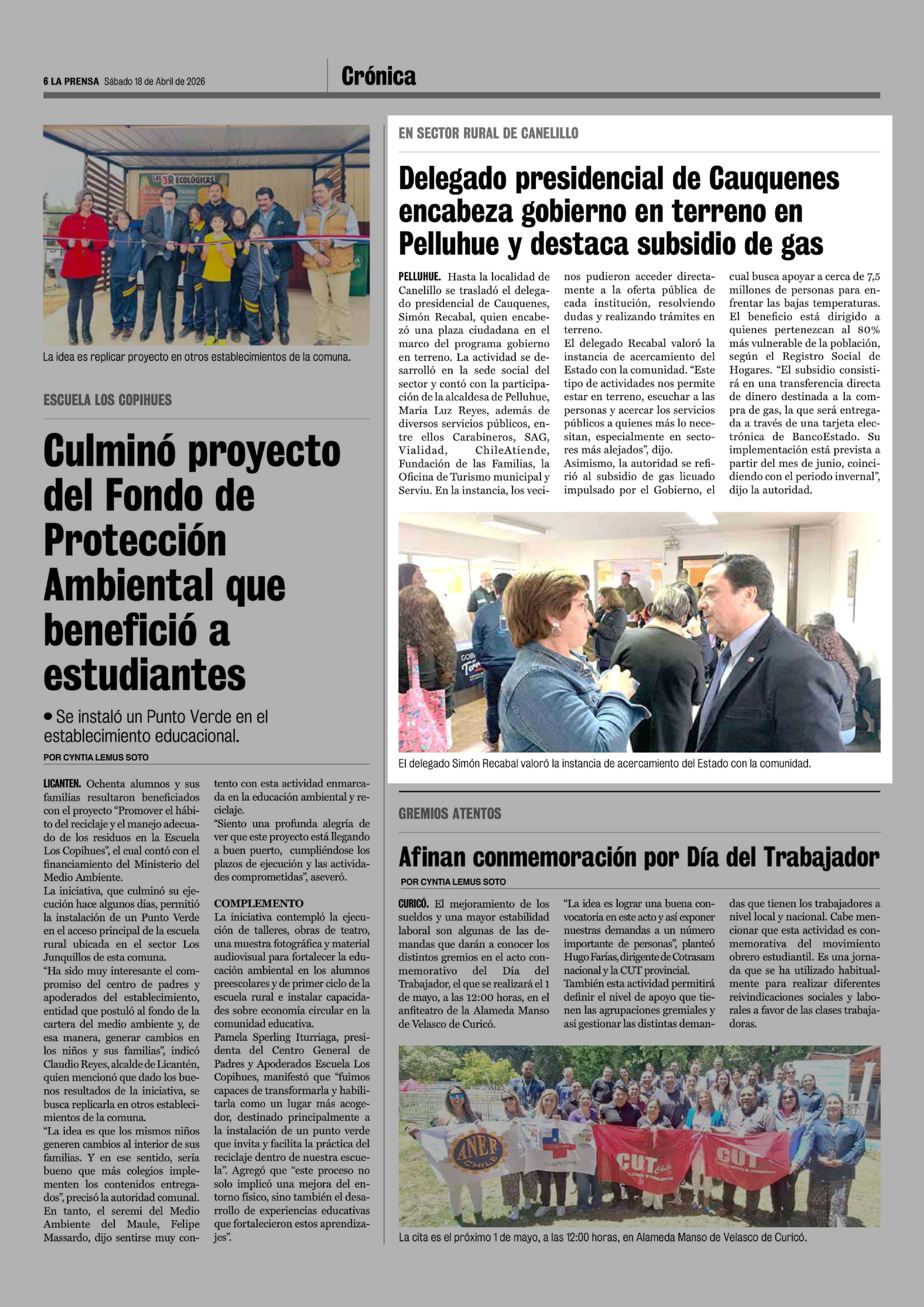 Fecha: 18-04-2026 Sector: Noticia general Región: Región del Maule