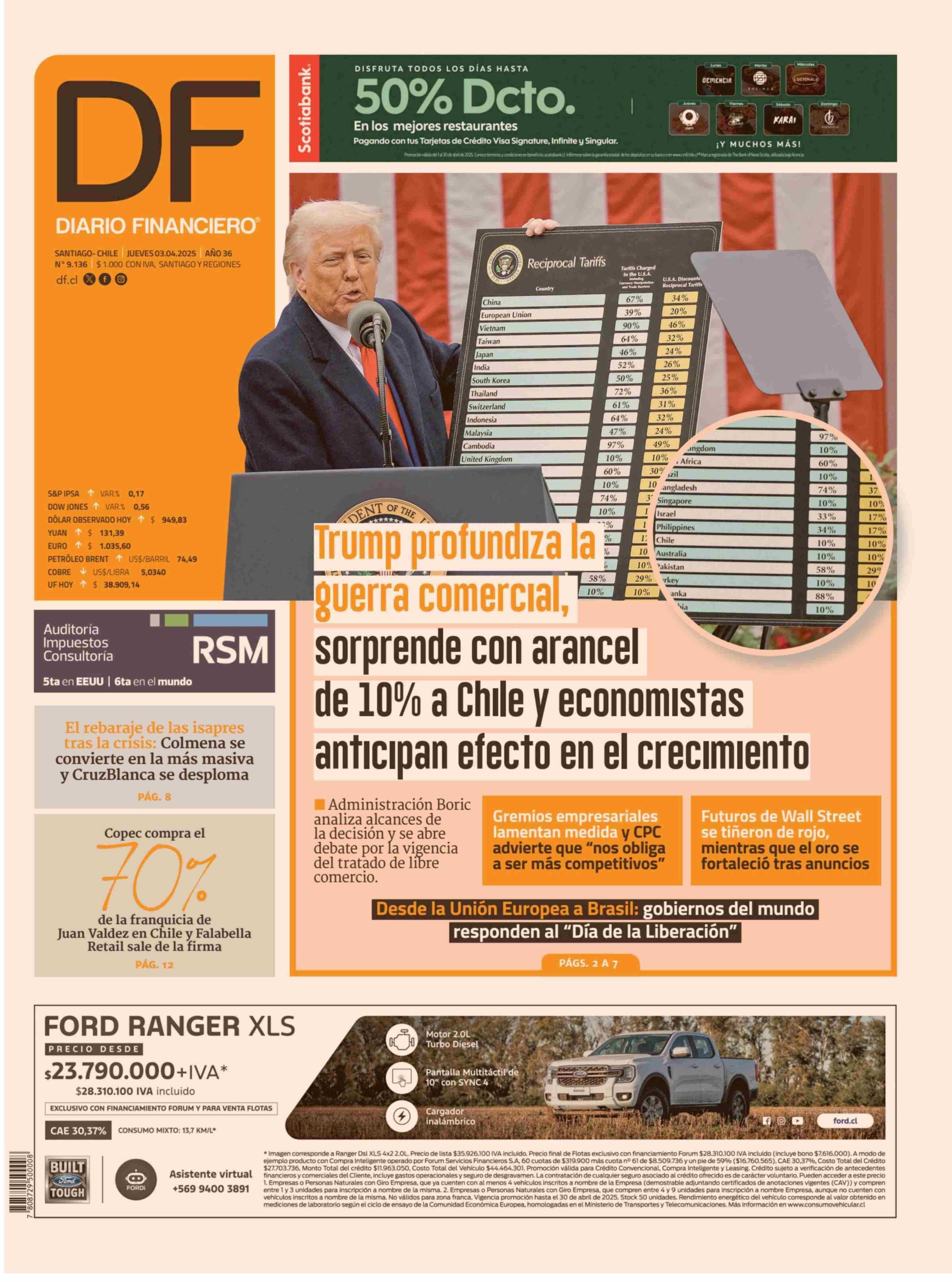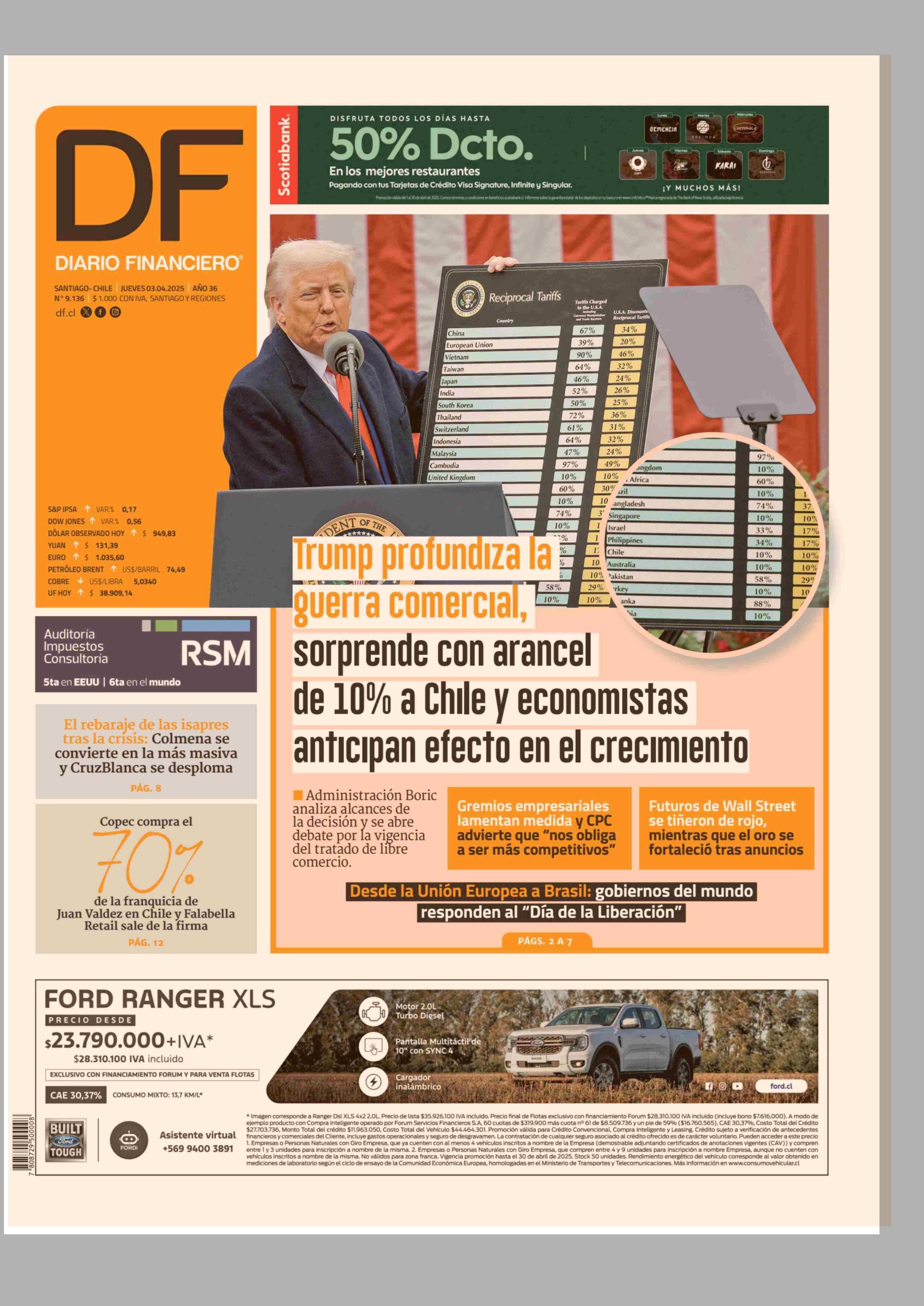 PORTADA DIARIO FINANCIERO - CHILE 03-04-2025 Diario Financiero |