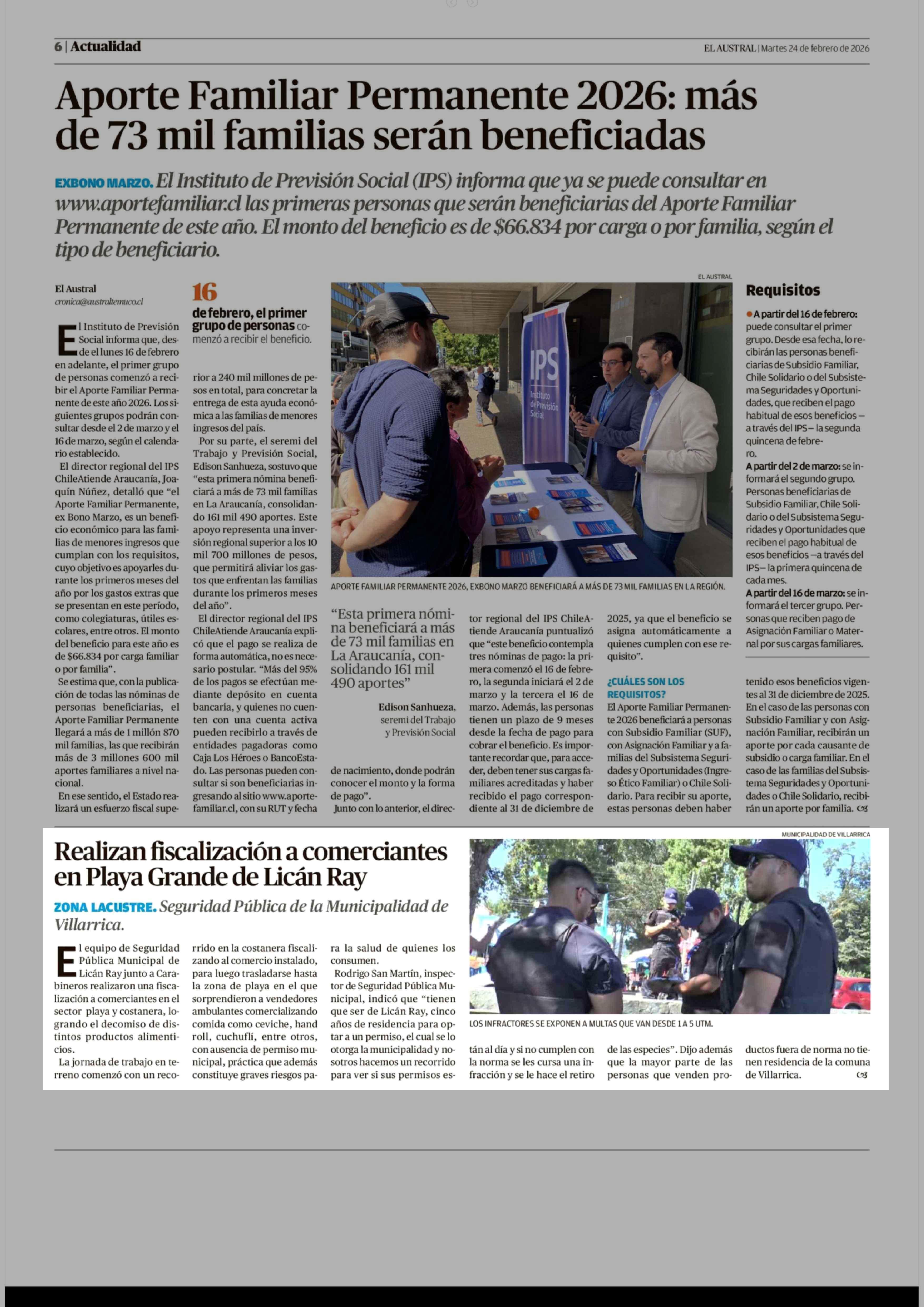 | Fecha: | 24-02-2026 | Sector: | Noticia general | Región: | Región de la Araucanía |