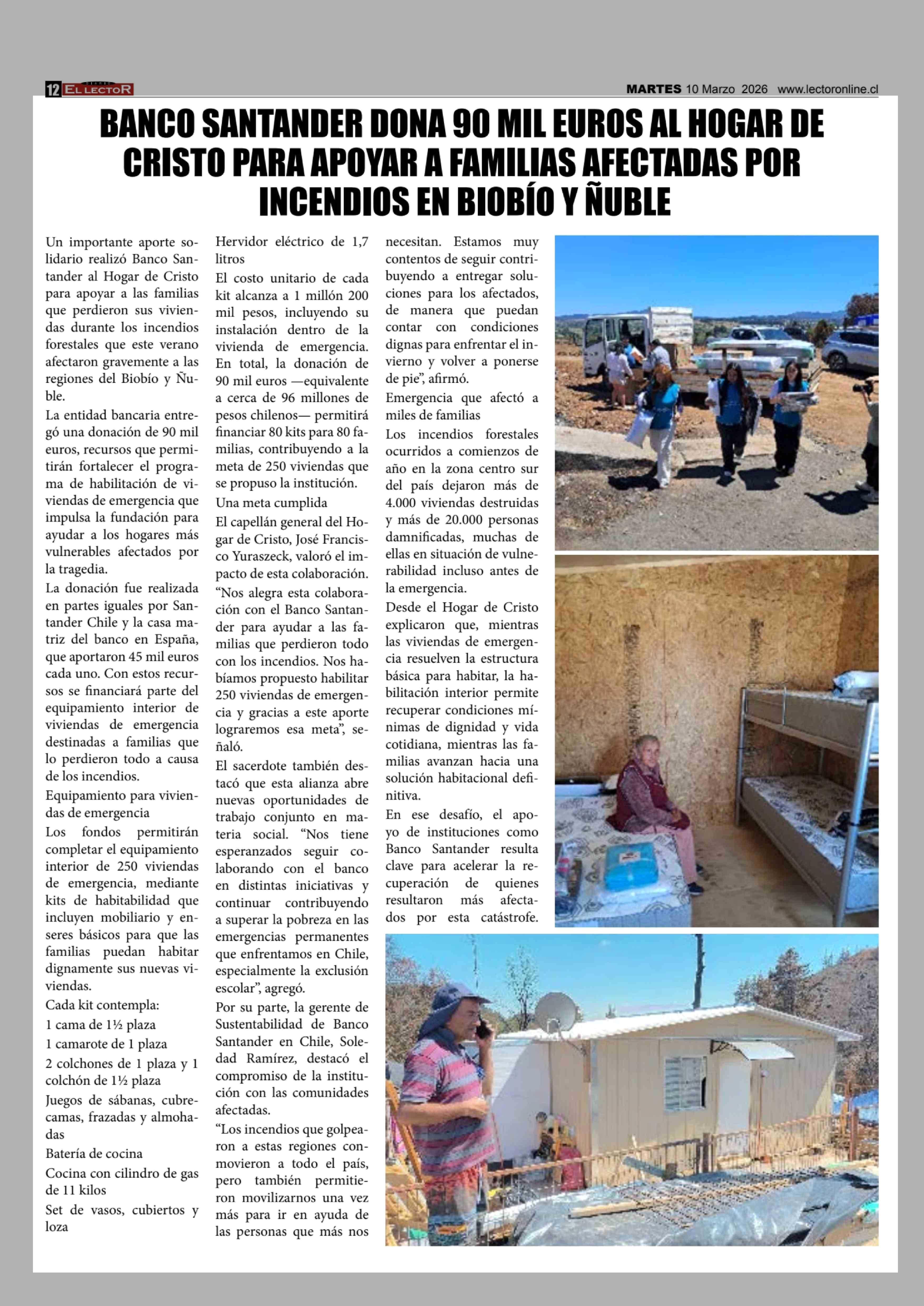 Título: BANCO SANTANDER DONA 90 MIL EUROS AL HOGAR DE CRISTO PARA APOYAR A FAMILIAS AFECTADAS POR INCENDIOS EN BIOBÍO Y ÑUBLE