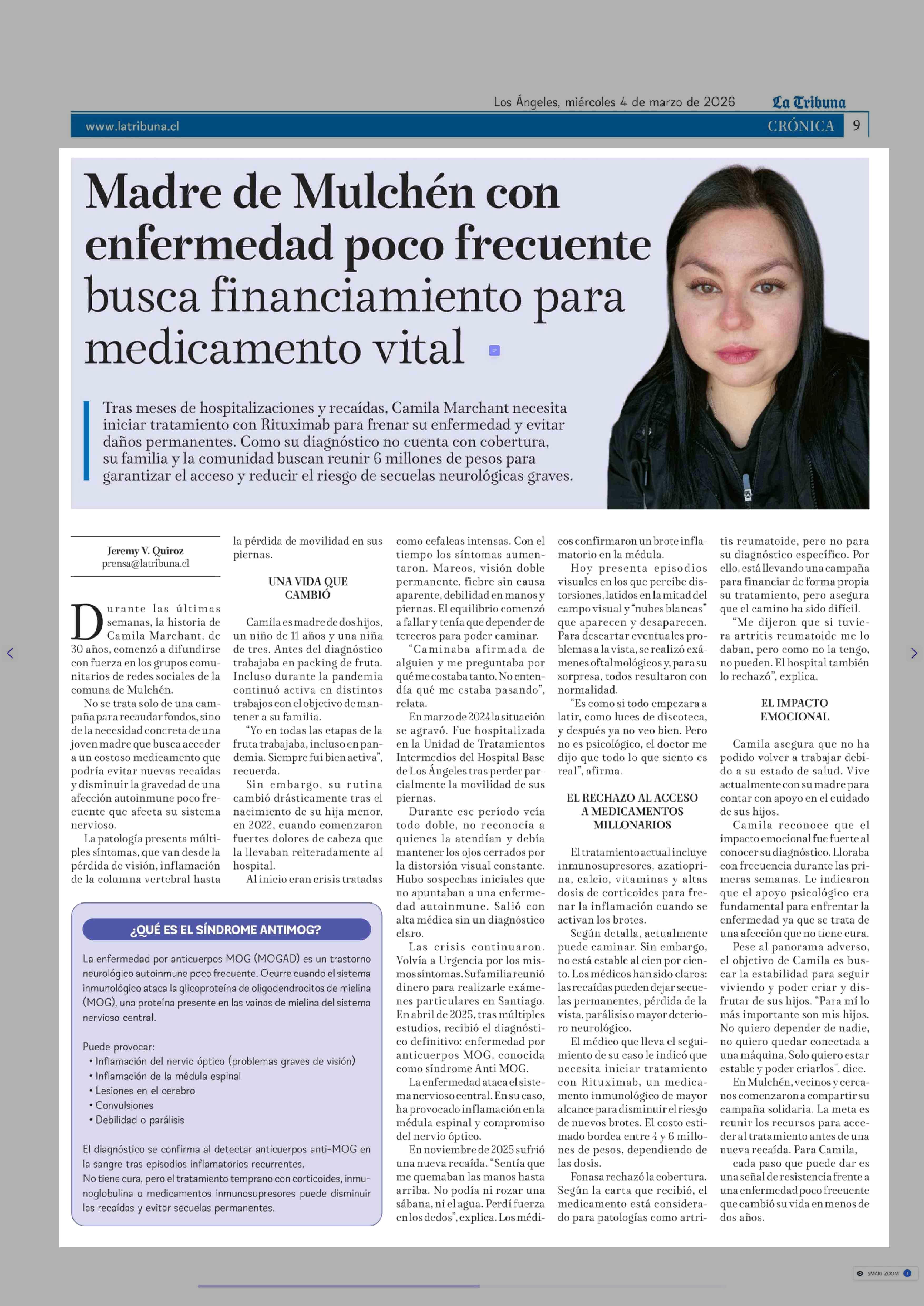 Título: Madre de Mulchén con enfermedad poco frecuente busca financiamiento para medicamento vital