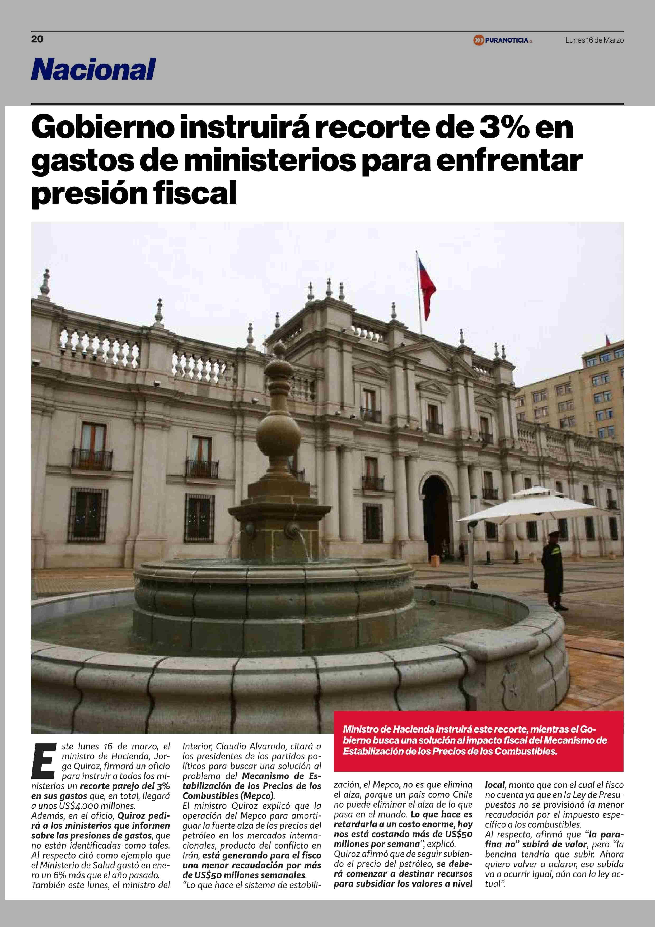Fuente: Puranoticia.cl (Puranoticia.cl) Página(s): 20