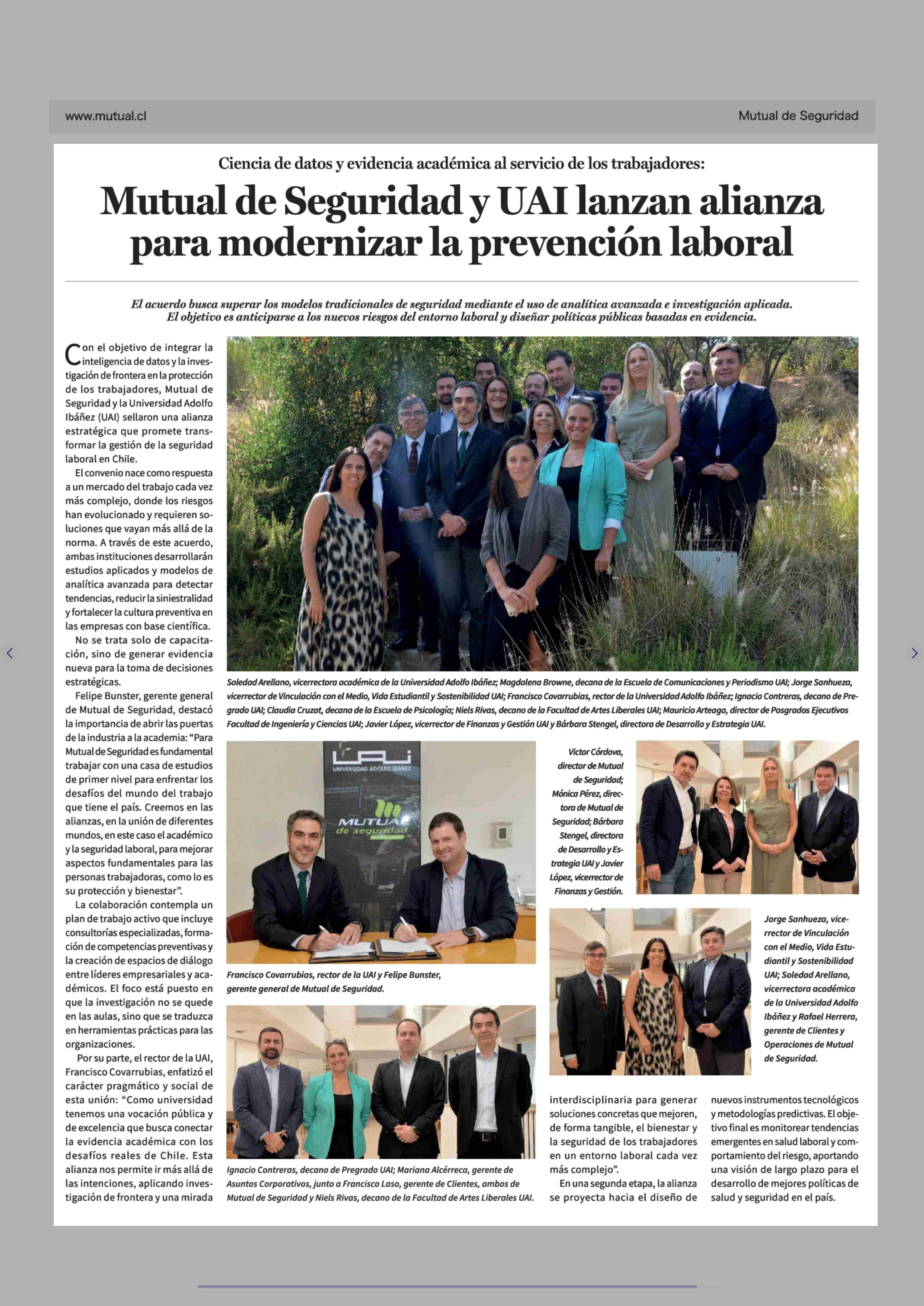 | Título: | Mutual de Seguridad y UAI lanzan alianza para modernizar la prevención laboral |