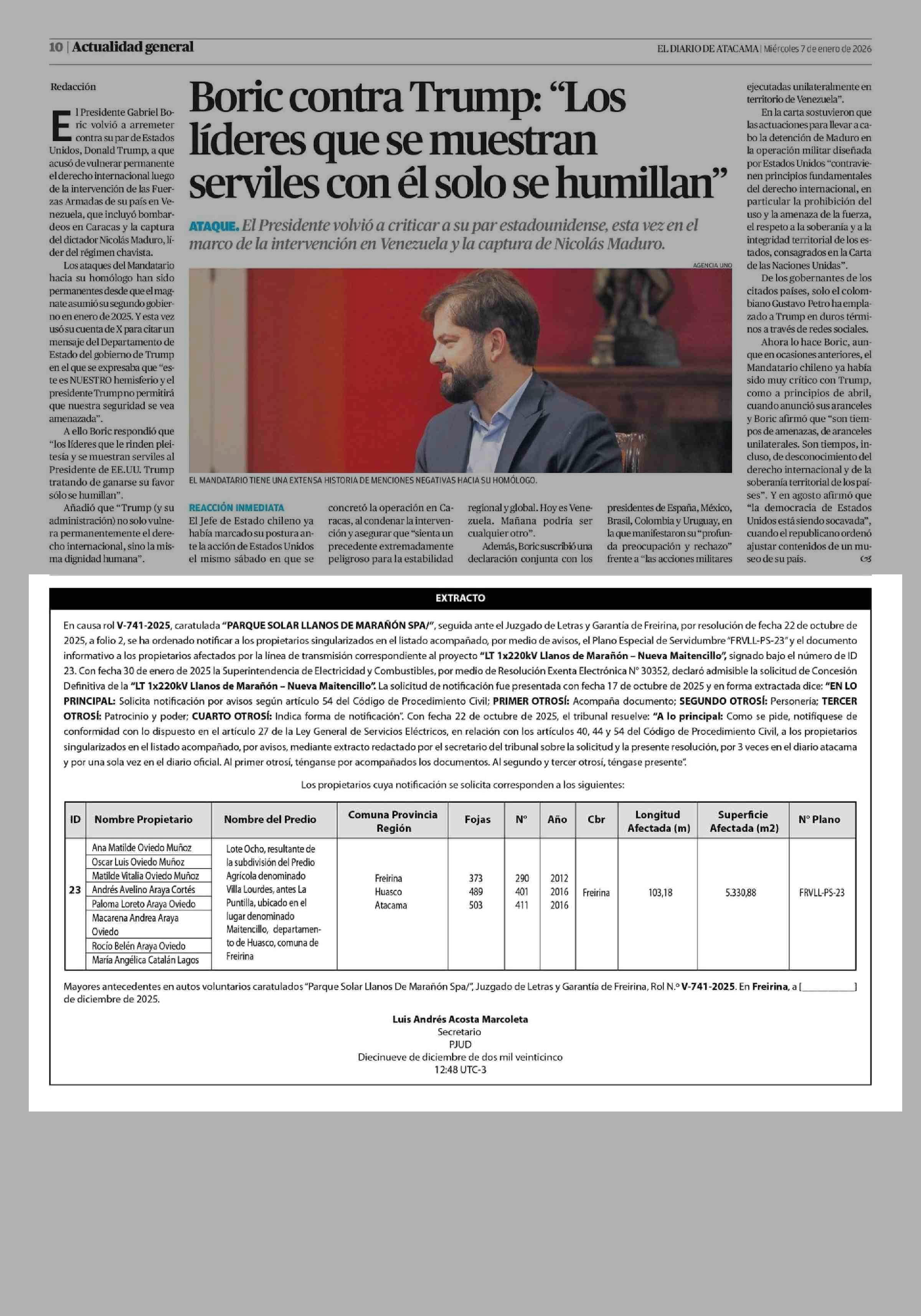 Extractos: EXTRACTO 07-01-2026 El Diario de Atacama |